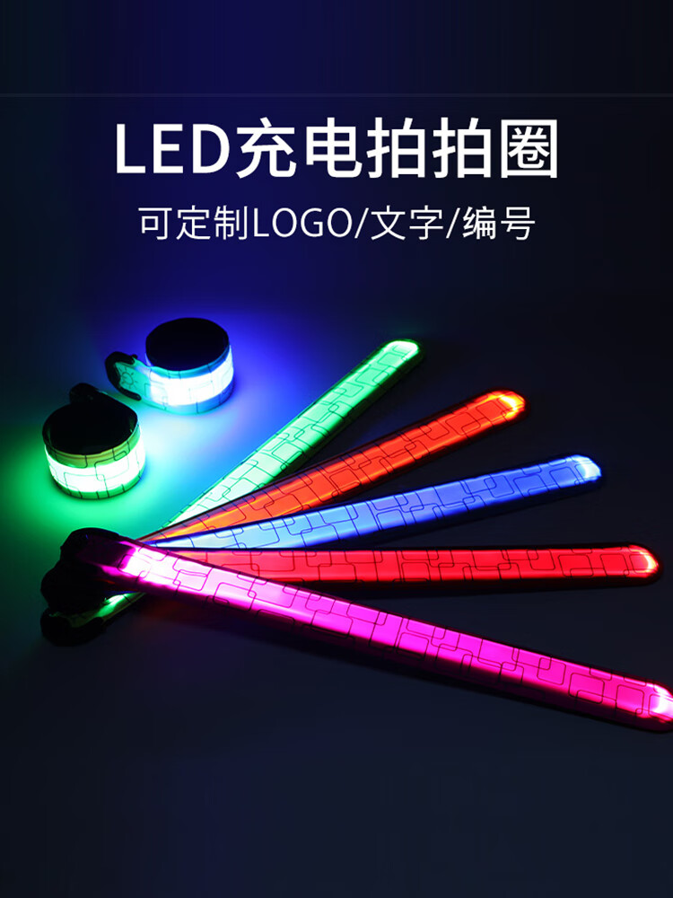 【夜跑高亮臂环】奈竞夜跑LED啪啪圈USB充电款发光手环手臂带灯 红色-充电款
