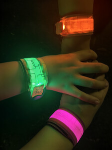 颜色很鲜艳,适合晚上夜跑或者散步,带在手上比较安全,稍微黑一点的路段也不用担心安全问题,我们一人一个,啥颜色都挺喜欢的。