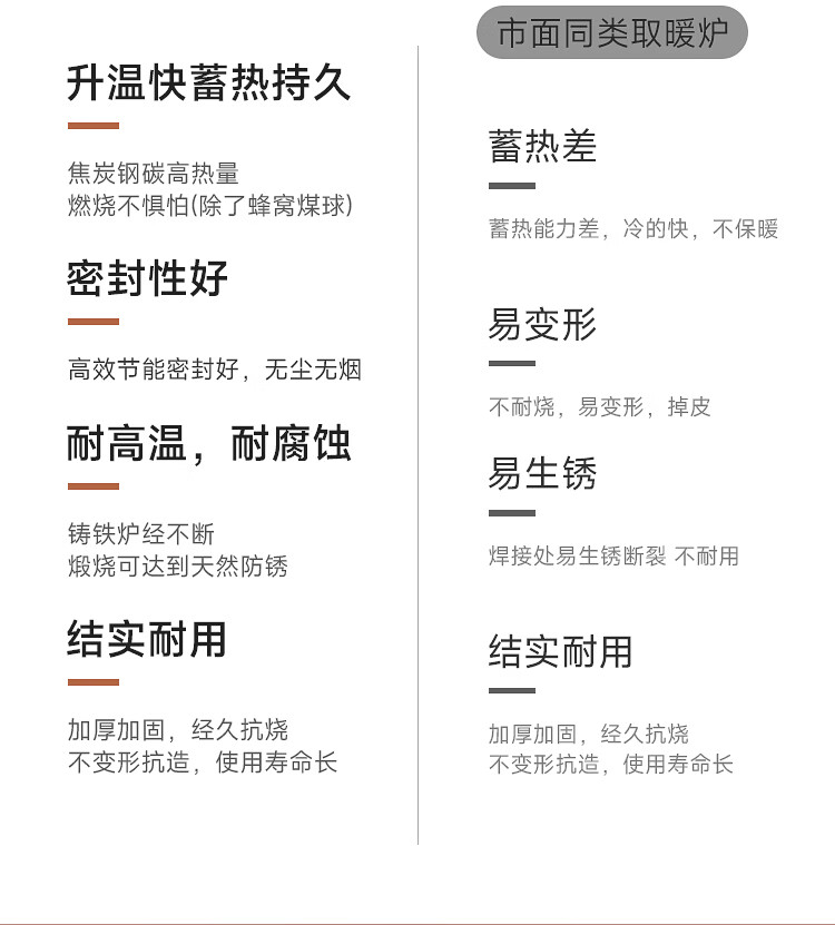抗风效果好,取暖效果好,保温时间长,燃烧彻底,没有烟雾