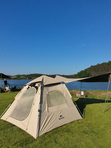 挪客Naturehike亘12充气帐篷户外野营加厚露营棉布帐篷屋形帐篷 流沙金-亘12棉布充气帐篷