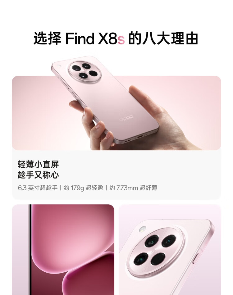 OPPO展机oppoFind X8s极窄四等边 天玑9400+智能AI拍照游戏电竞5g手机 落樱粉 12GB+512GB 单机+原装充电器+全国联保
