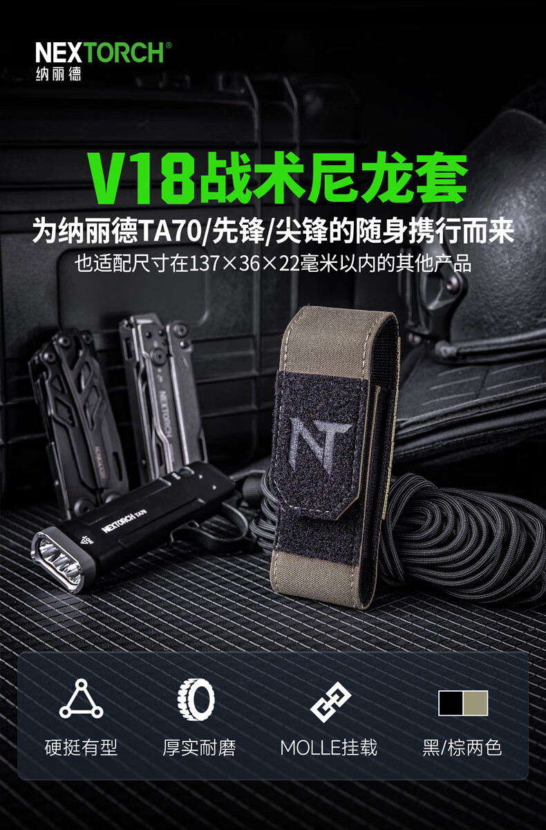 纳丽德(NEXTORCH)V18手电筒套手电筒尼龙套适用TA70强光手电筒 V18黑色(适用TA70战术手电筒)