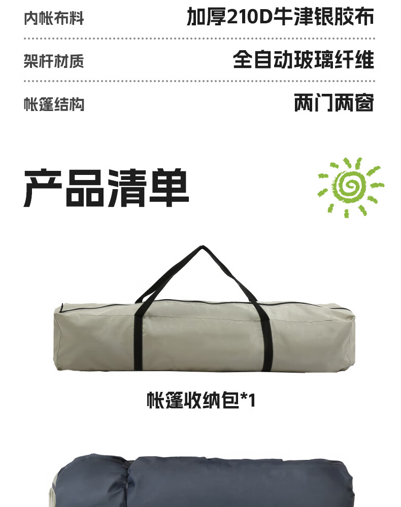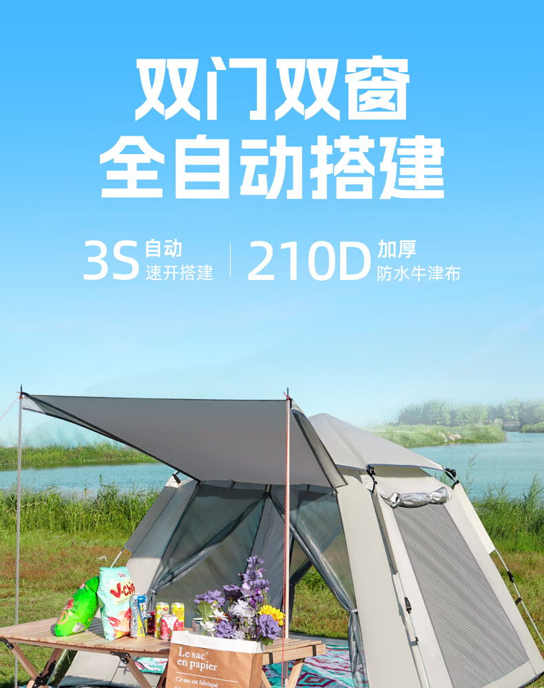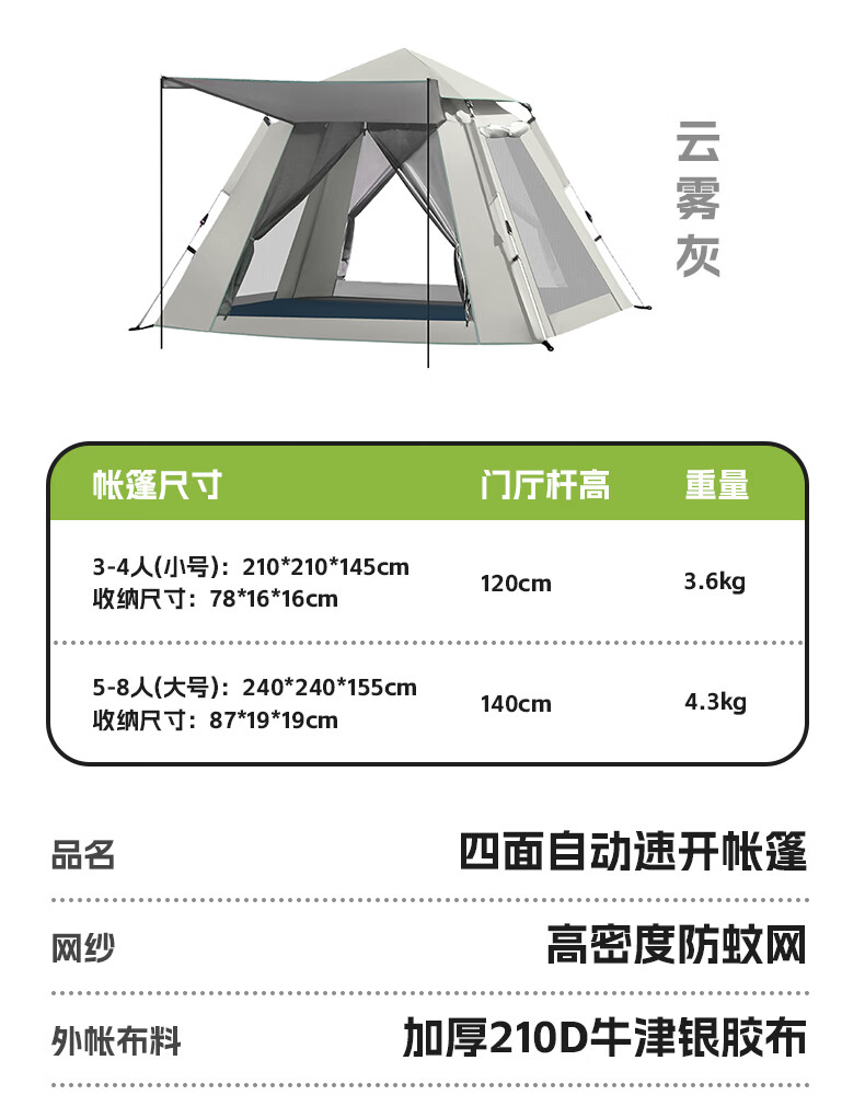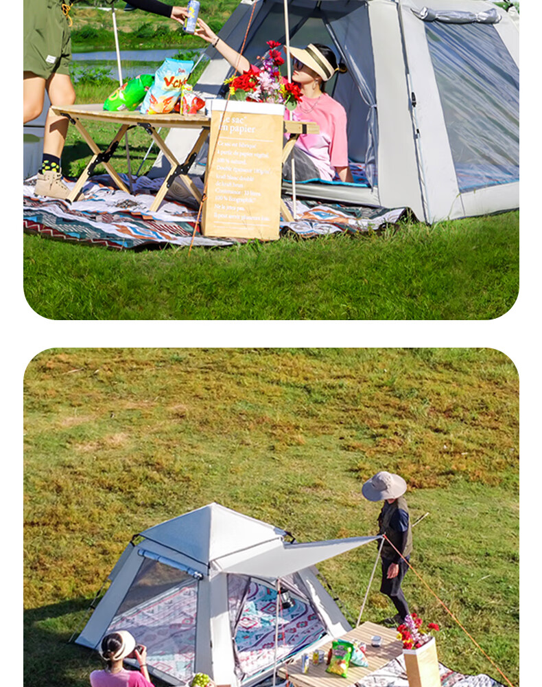 早行客户外露营帐篷全自动速开帐篷防雨过夜天幕二合一露营装备 【3-5人加大款】+门厅杆+天窗+防雨顶棚