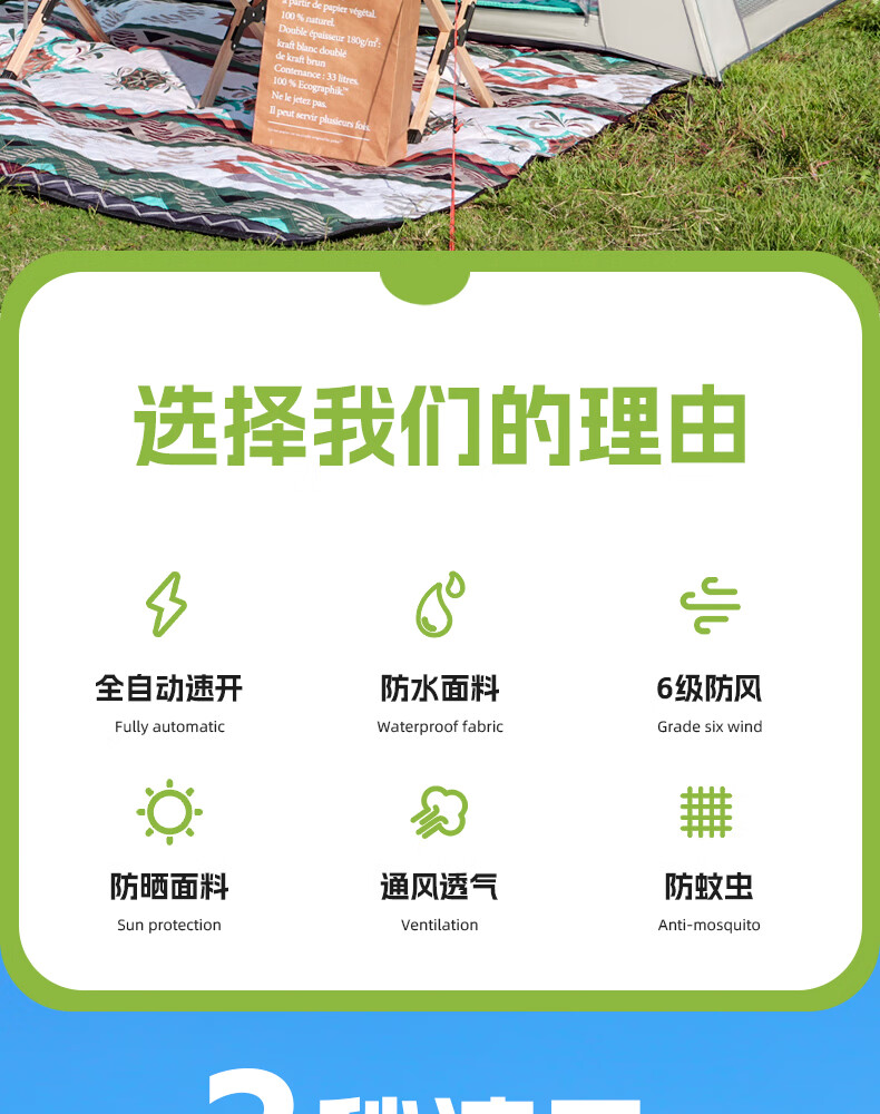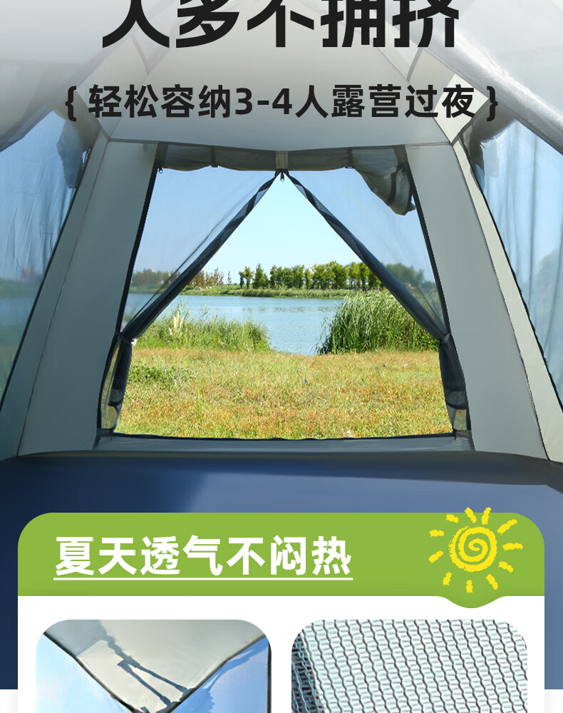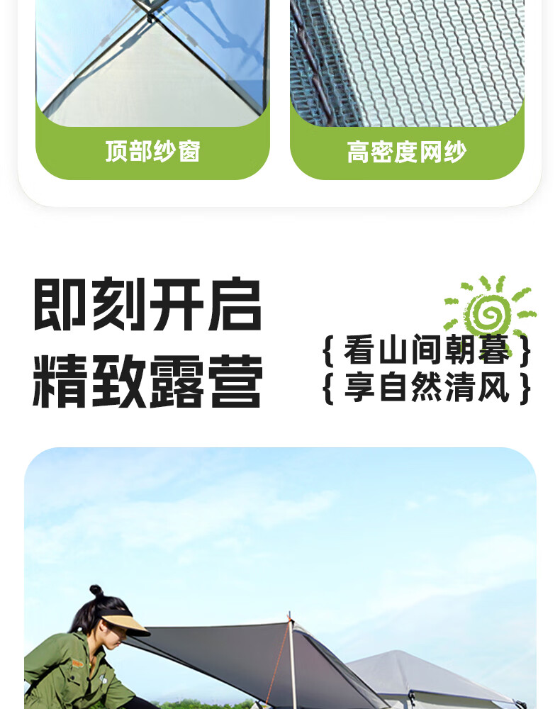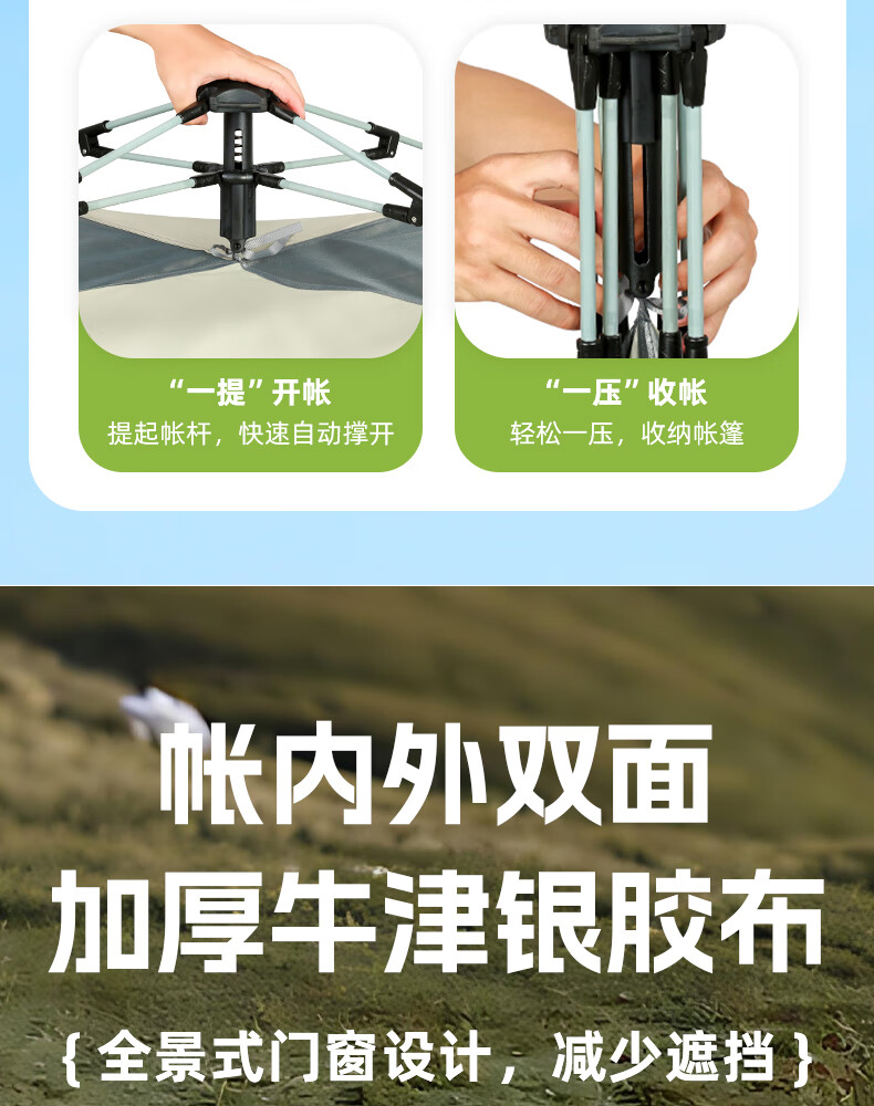 早行客户外露营帐篷全自动速开帐篷防雨过夜天幕二合一露营装备 【3-5人加大款】+门厅杆+天窗+防雨顶棚
