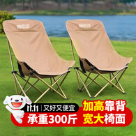 早行客户外露营折叠椅高背月亮椅便携加高靠背椅子可躺可睡午休躺椅 卡其色+收纳袋 加高款【重1.79kg】600D牛津布