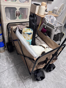 这辆营地车绝对是户外神器!折叠后轻巧不占空间,展开后容量惊人。万向轮顺滑省力,崎岖路面也能轻松拉动。牛津布料厚实耐磨,承重能力超预期。无论是搬运装备、采购物资,还是带孩子出行都特别方便,大大提升了露营幸福感,物超所值!