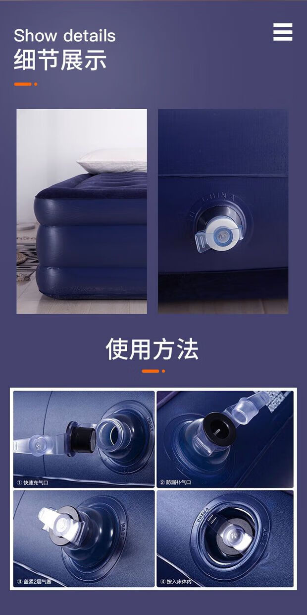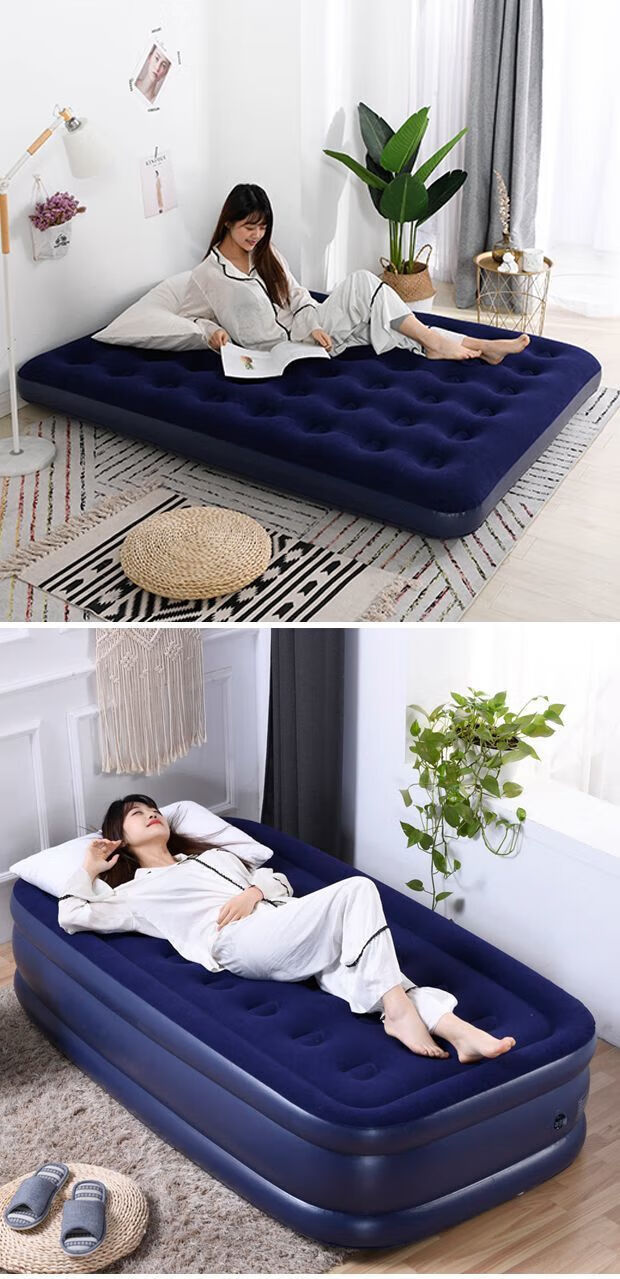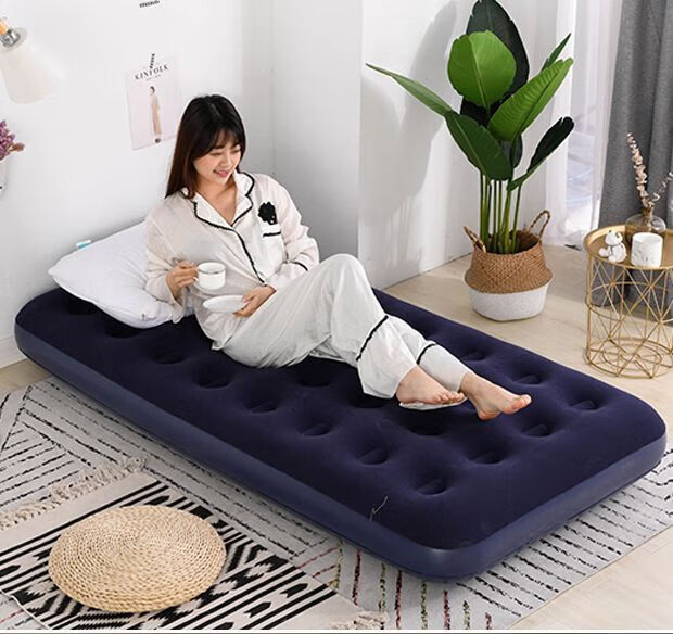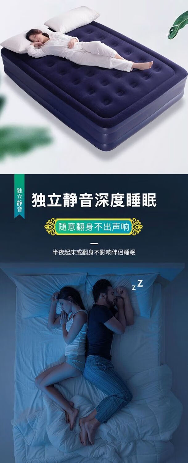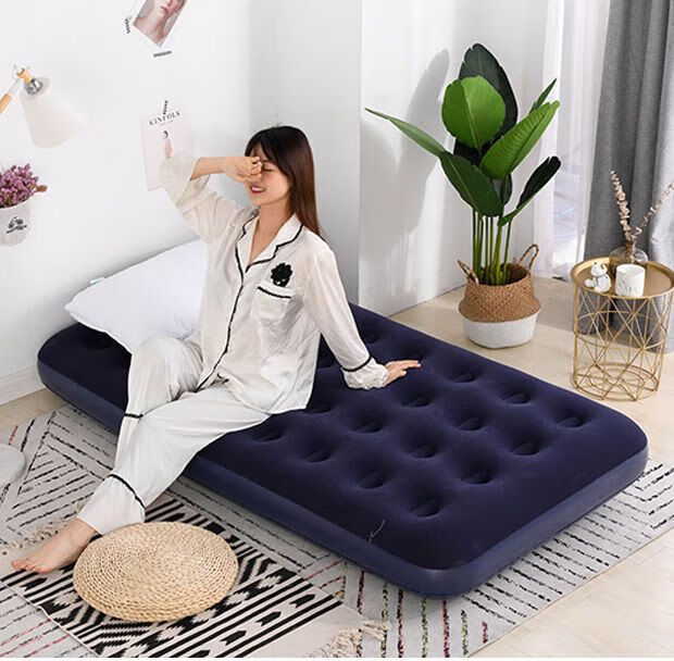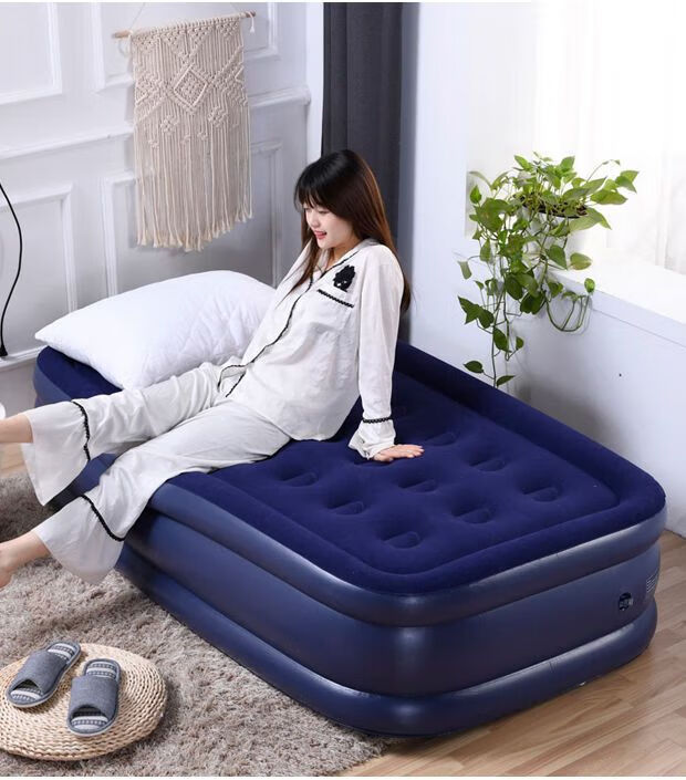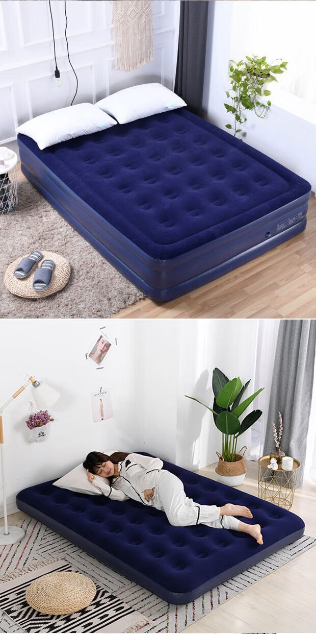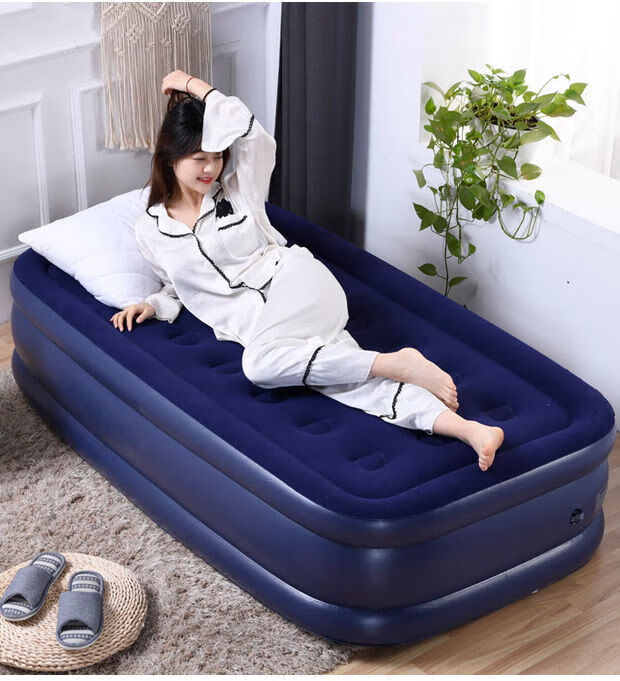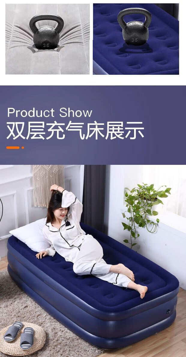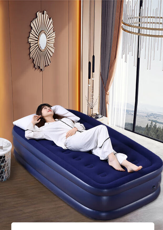 冲气式床打地铺充气床加高加厚气垫床单人双人折叠懒人特厚空气床 蓝色(手拉泵+气枕+收纳袋+修补胶 190长95宽42高(加高单人床)