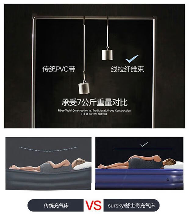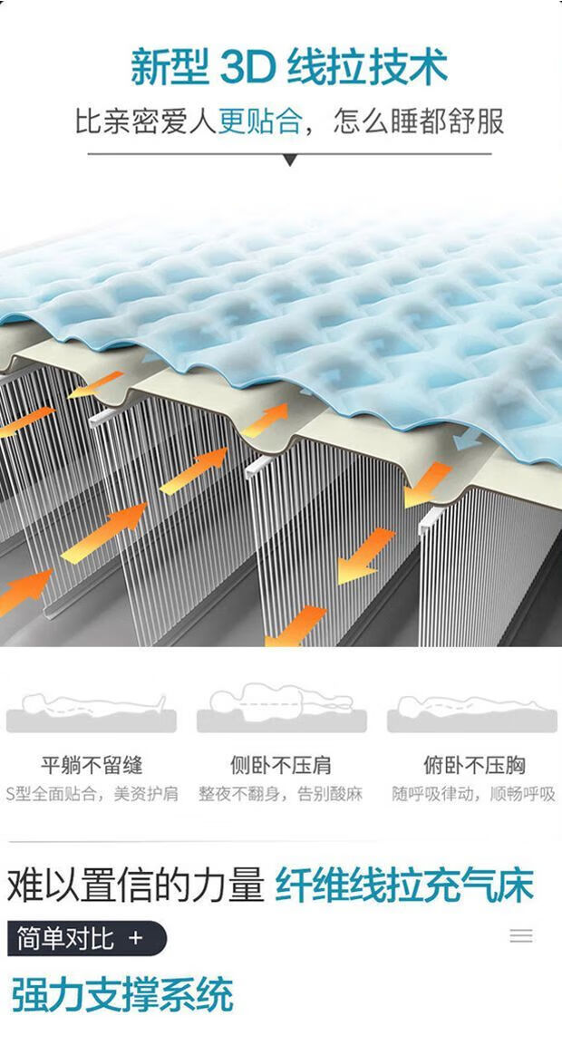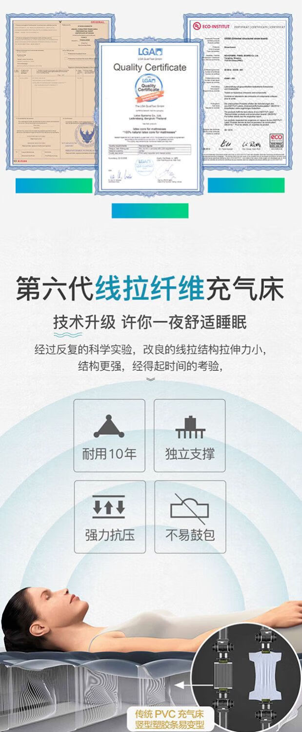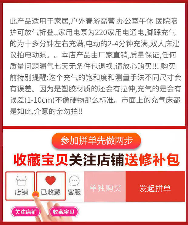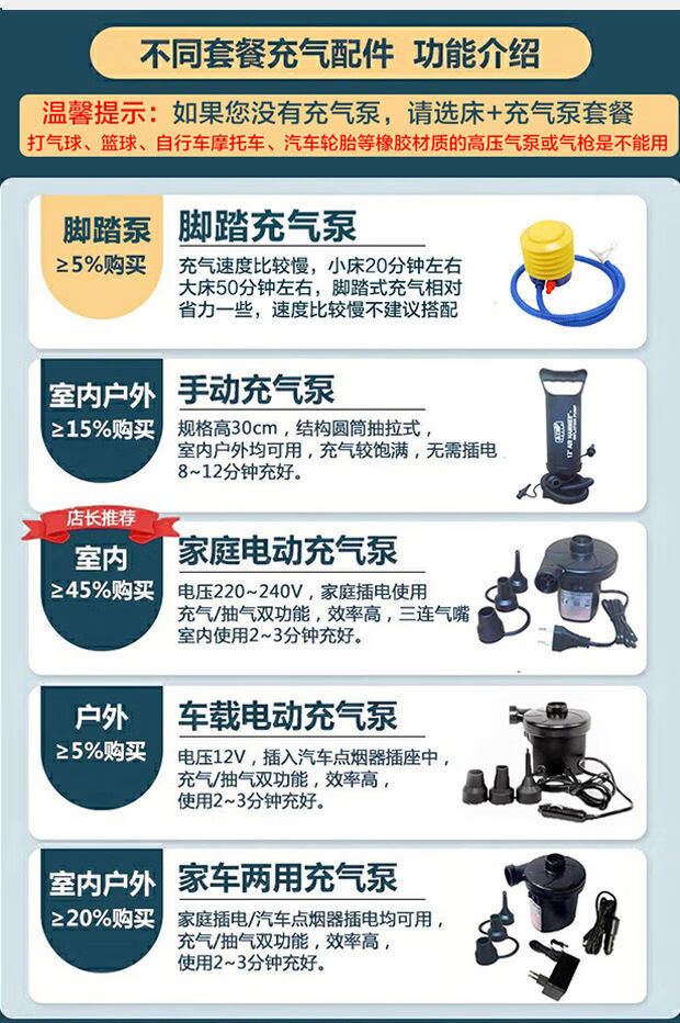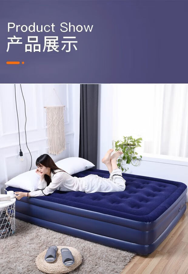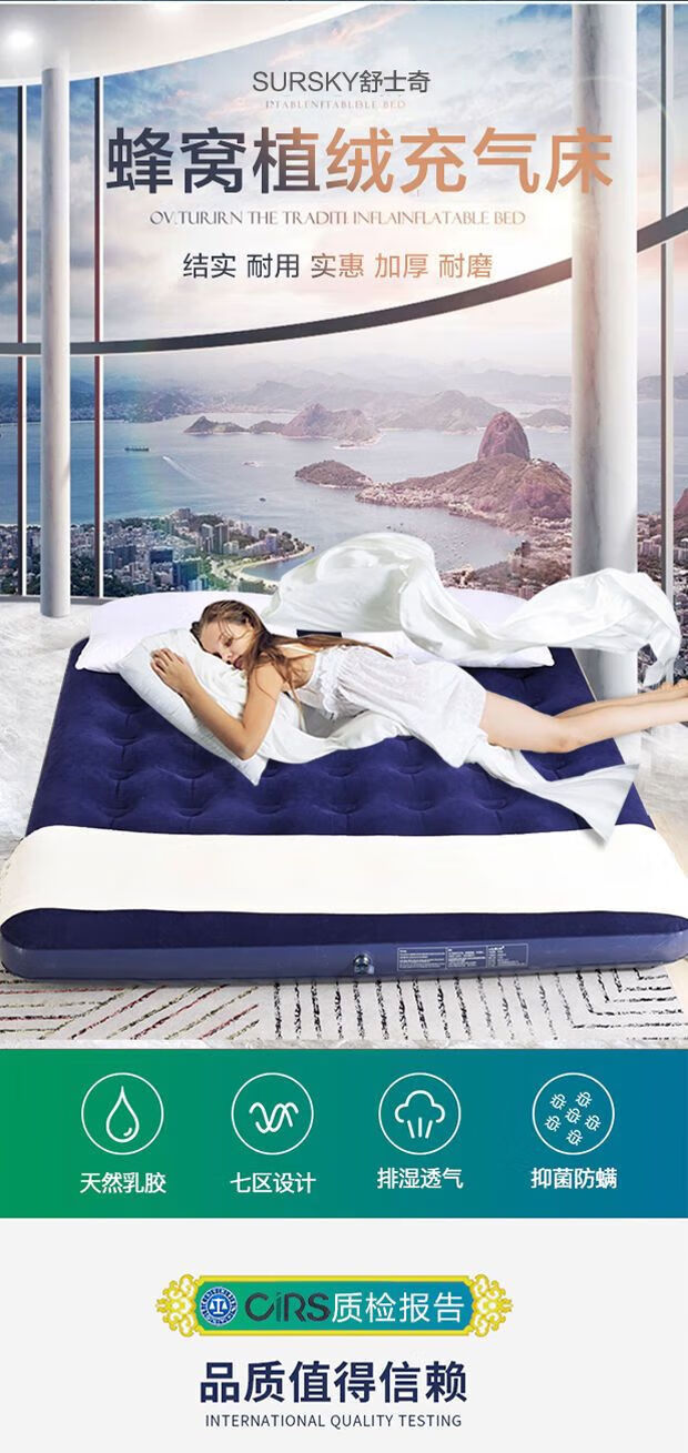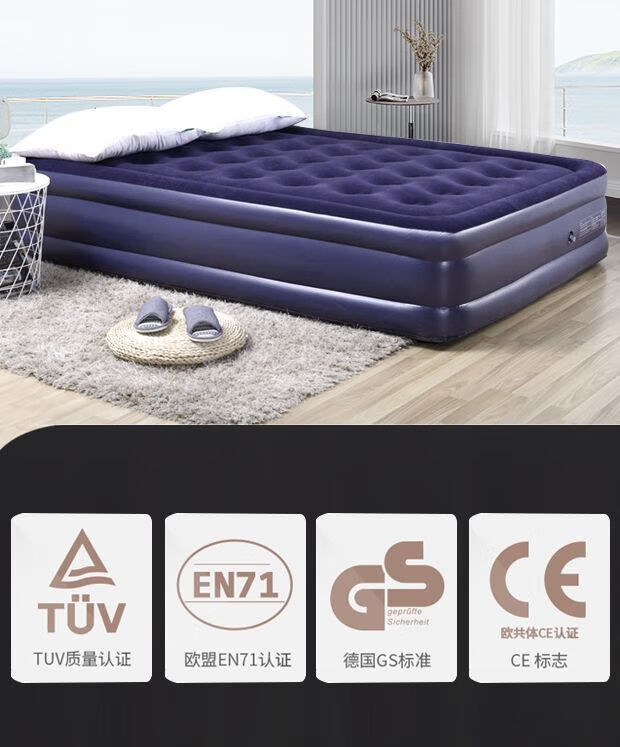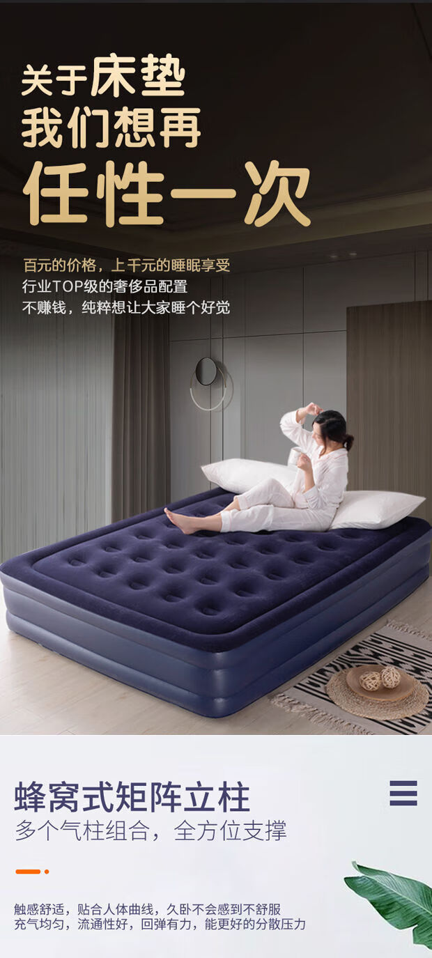 冲气式床打地铺充气床加高加厚气垫床单人双人折叠懒人特厚空气床 蓝色(手拉泵+气枕+收纳袋+修补胶 190长95宽42高(加高单人床)