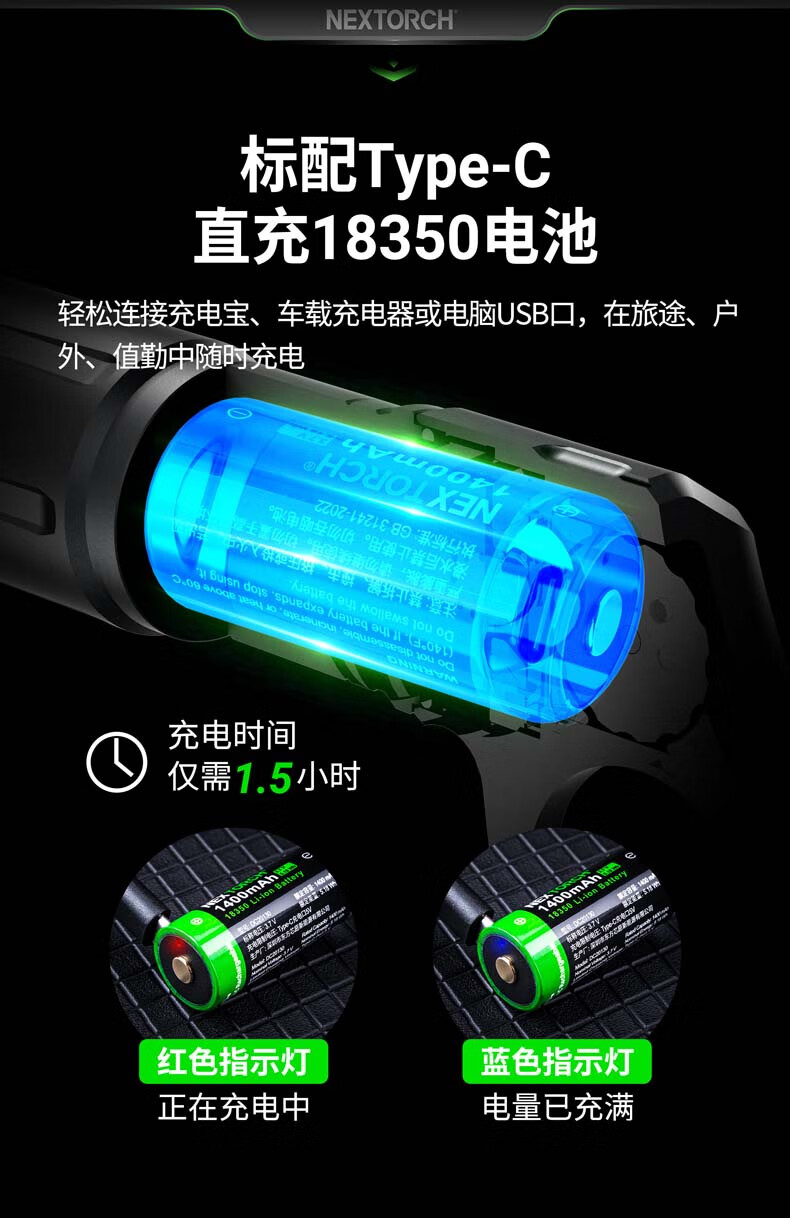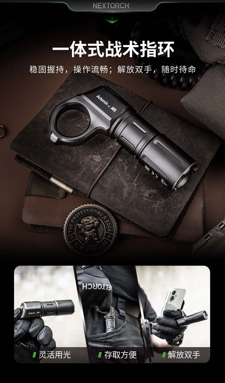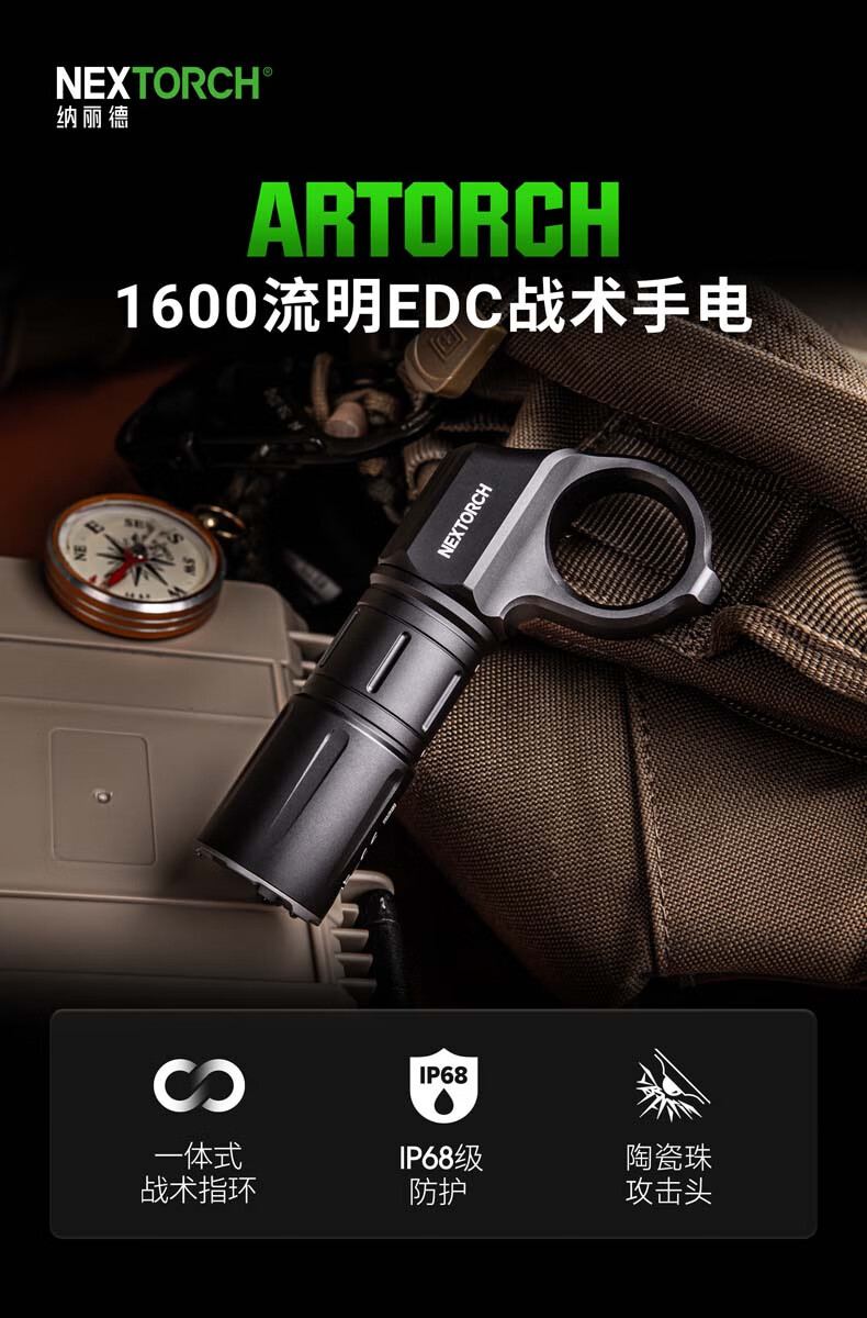 纳丽德(NEXTORCH)ARTORCH战术手电筒强光超亮可充电EDC便携户外应急照明灯 ARTORCH标配(含指环)