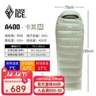 黑冰(BLACKICE)新款【A系列信封式羽绒睡袋】成人户外露营单人鸭绒睡袋可拼接 (新标准)A400/卡其 L