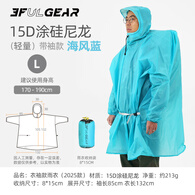 三峰出2025款冲锋衣式带帽檐雨衣钓鱼旅游登山徒步雨披轻量便携 15D湖蓝色L码25袖子款