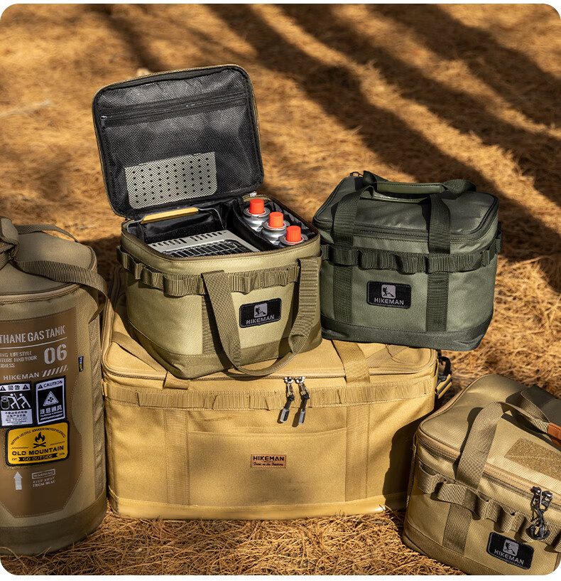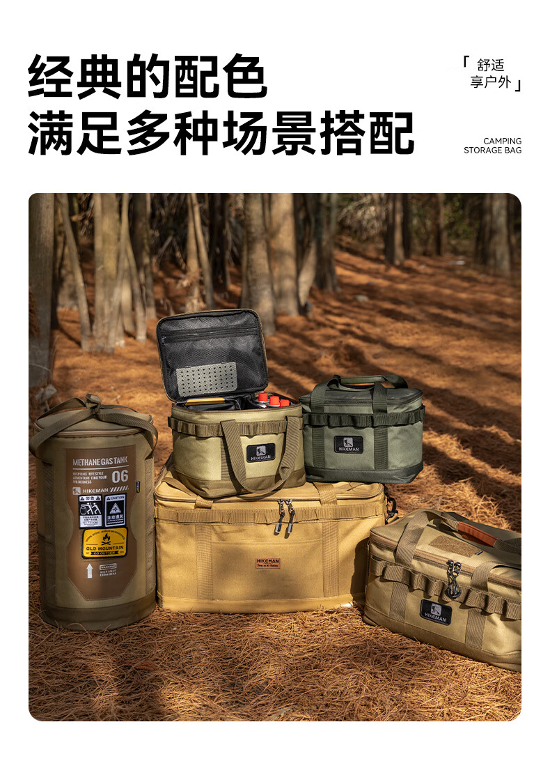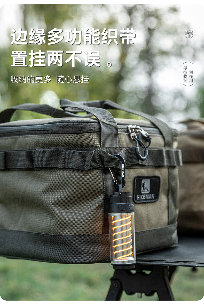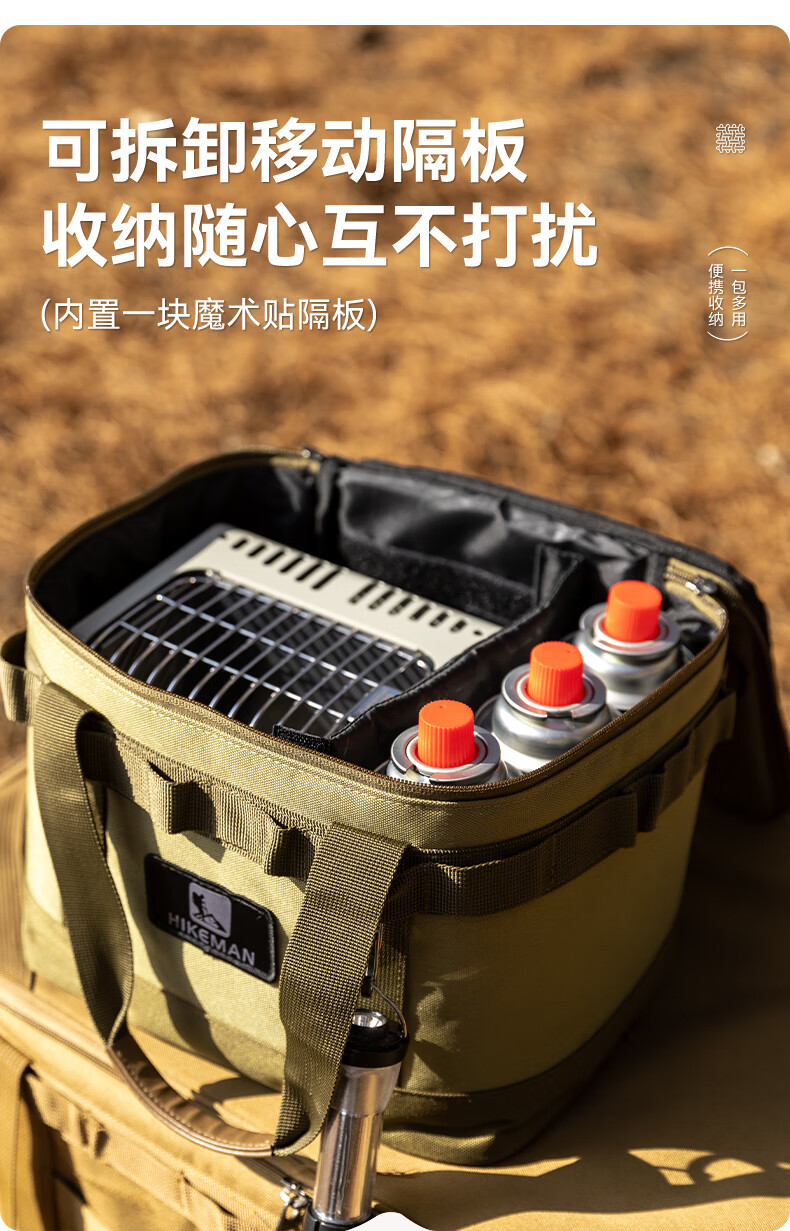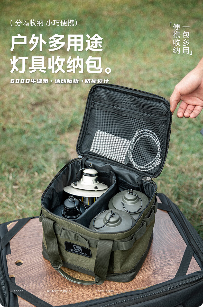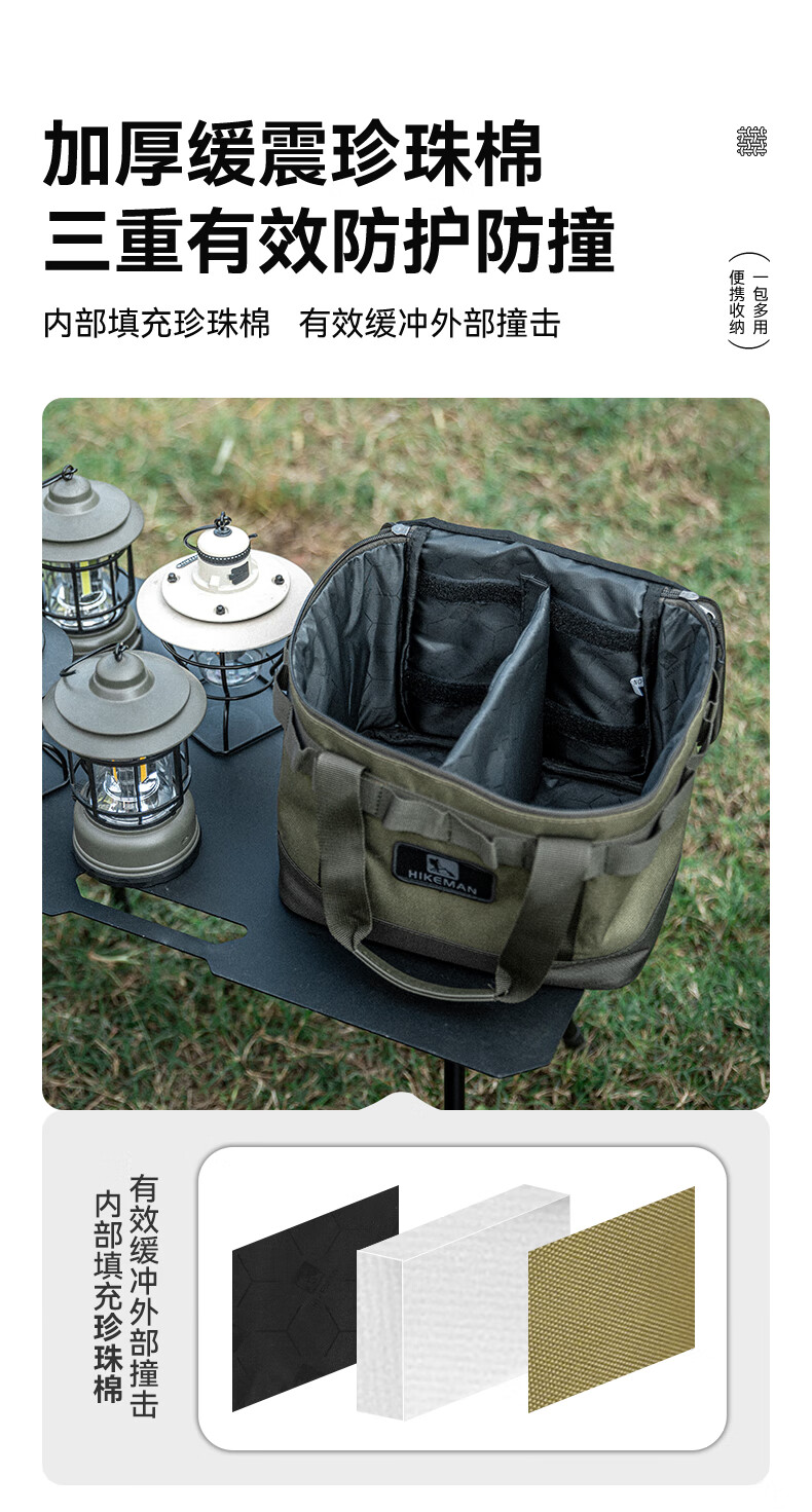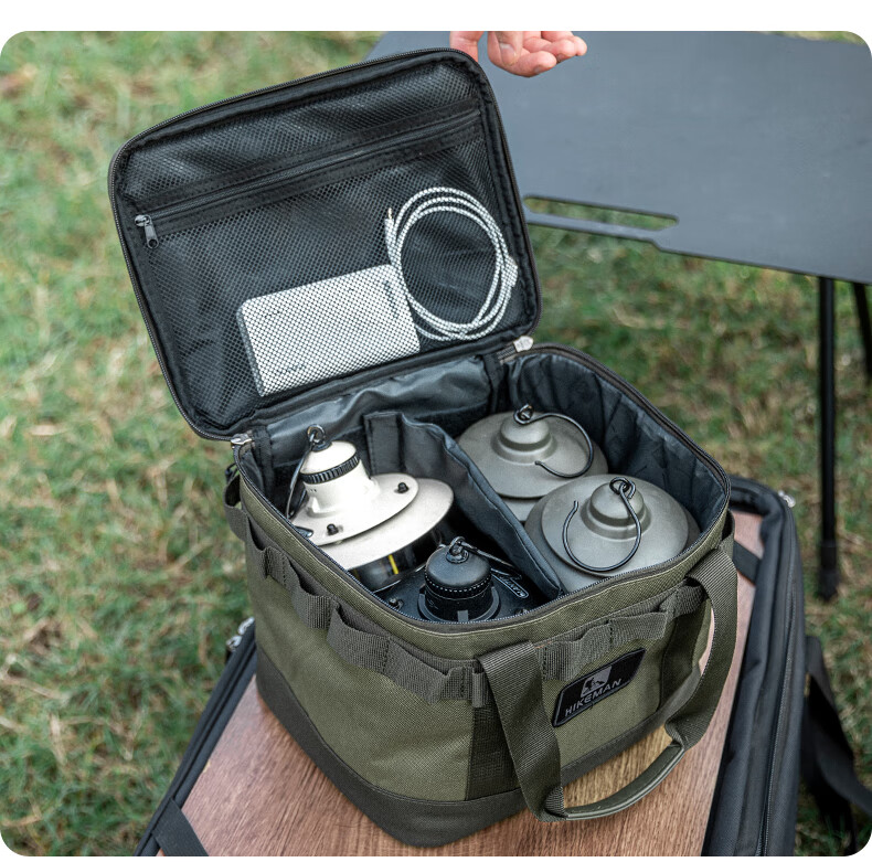 HIKEMAN户外露营灯具收纳包便携保护包大容量加厚防撞野营包炉具气罐包 【军绿色】10L