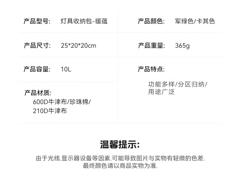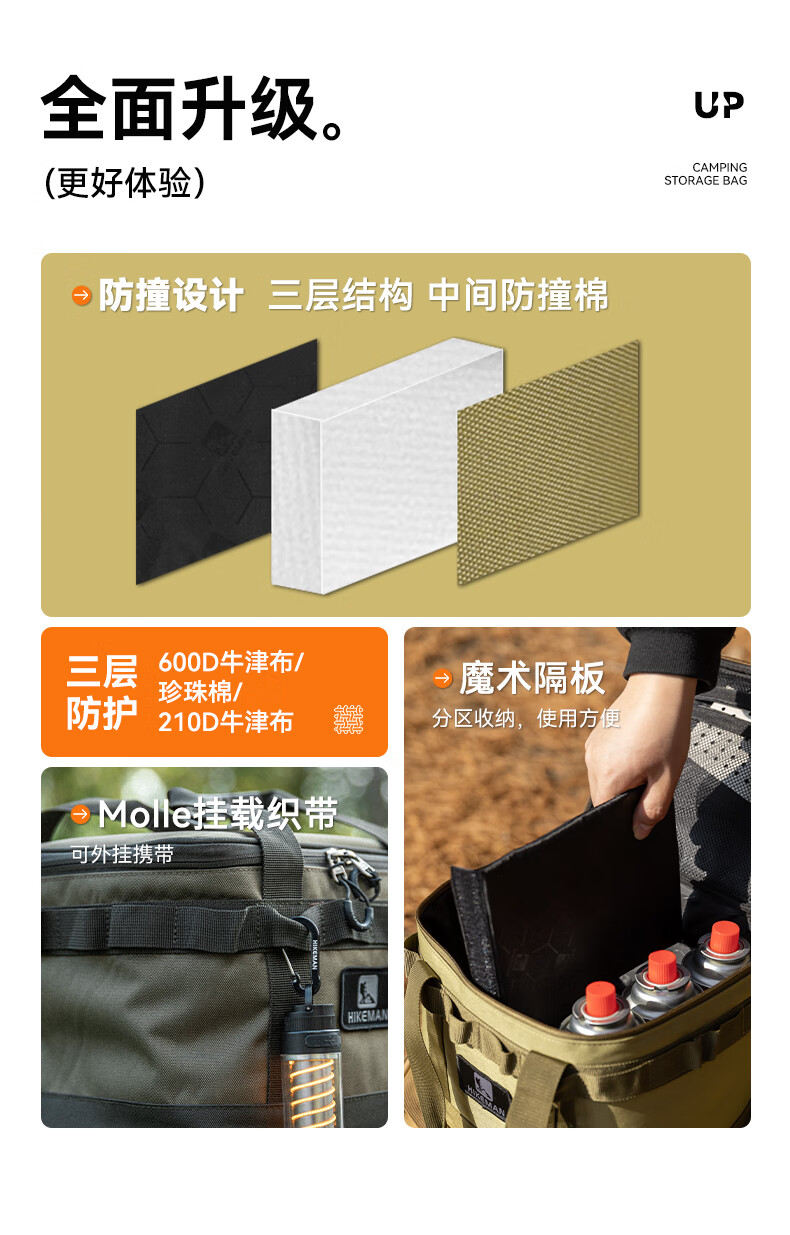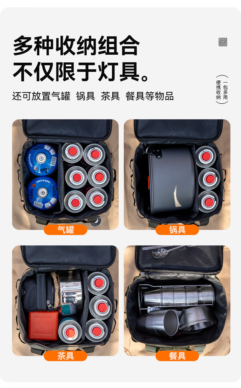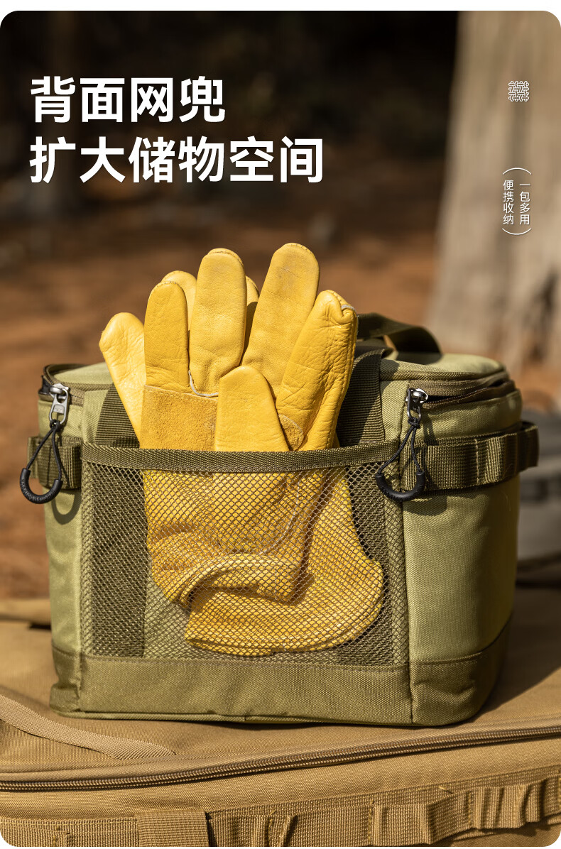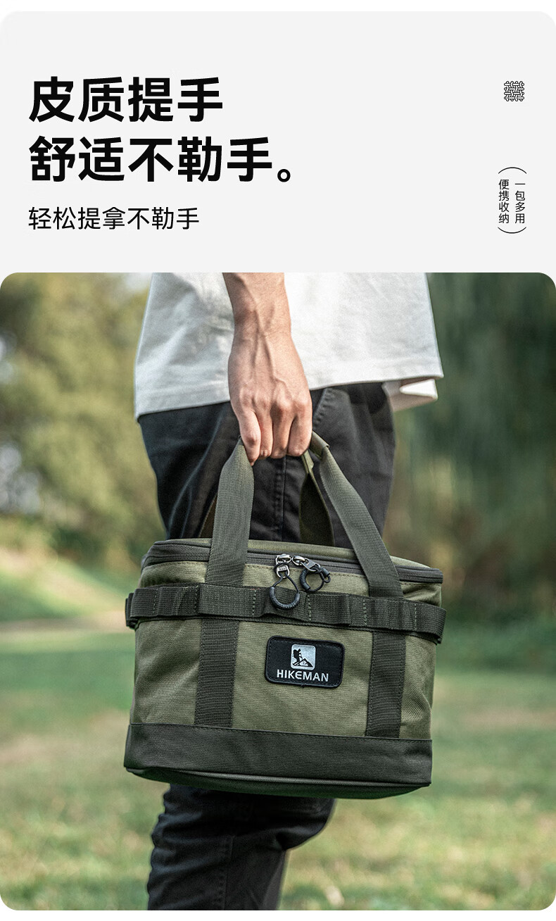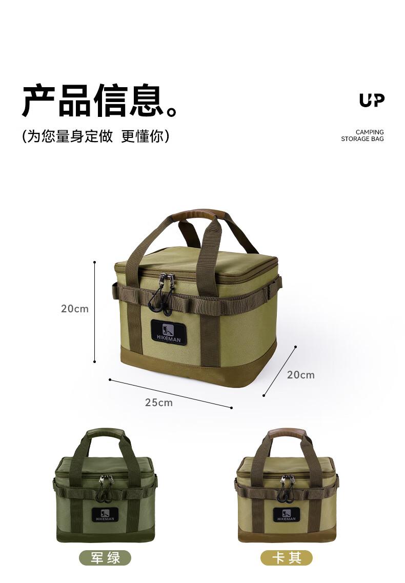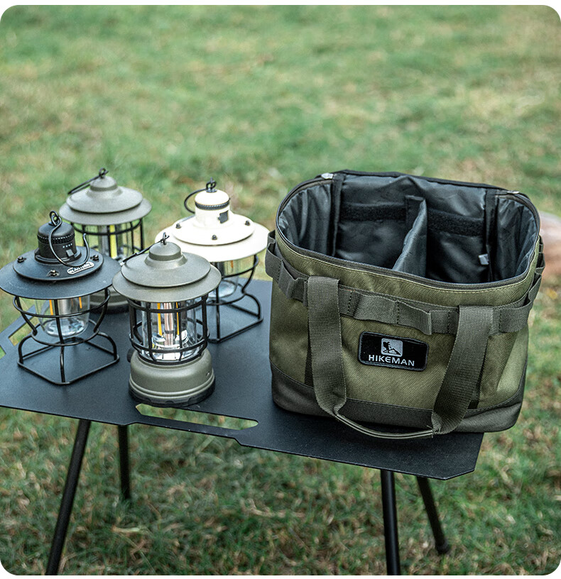 HIKEMAN户外露营灯具收纳包便携保护包大容量加厚防撞野营包炉具气罐包 【军绿色】10L