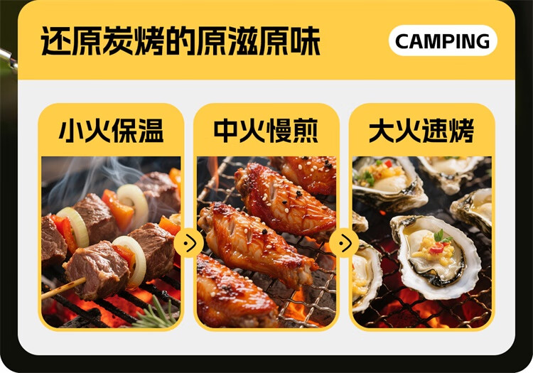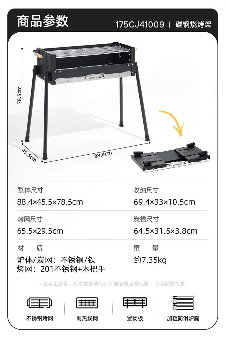 CAMELJEANS烧烤炉烤子家用户外商用烤肉2025新款烤串炉烤生蚝便携 黑色 175CJ41009
