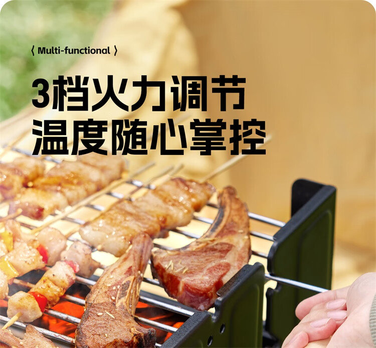 CAMELJEANS烧烤炉家用便携式烧烤炉露营折叠炭烤炉商用木炭烤肉架 烧烤工具三件套-174BJ30757