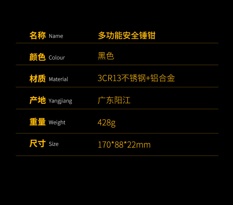乐然户外多功能工具钳子小刀折叠便携组合工具斧头车载露营安全锤子 14合1多功能安全锤钳配尼龙套