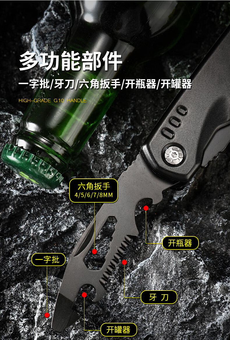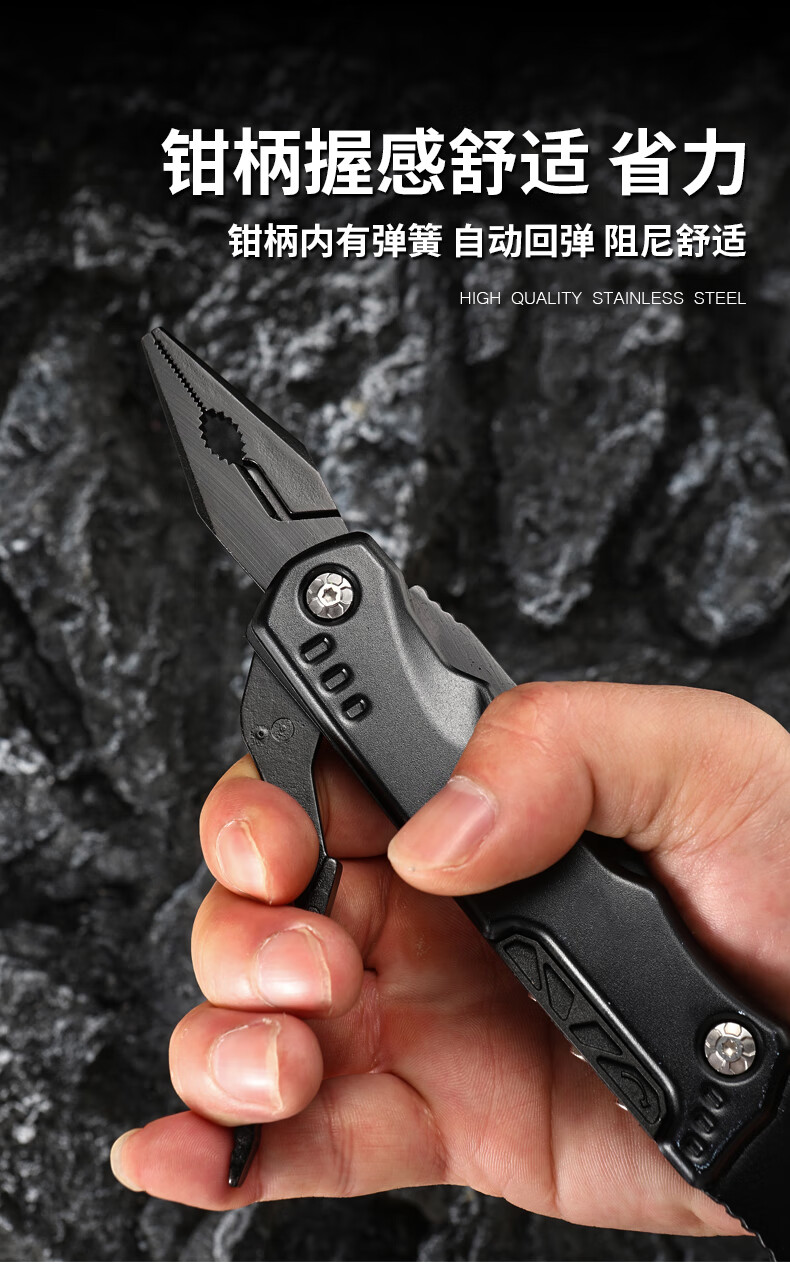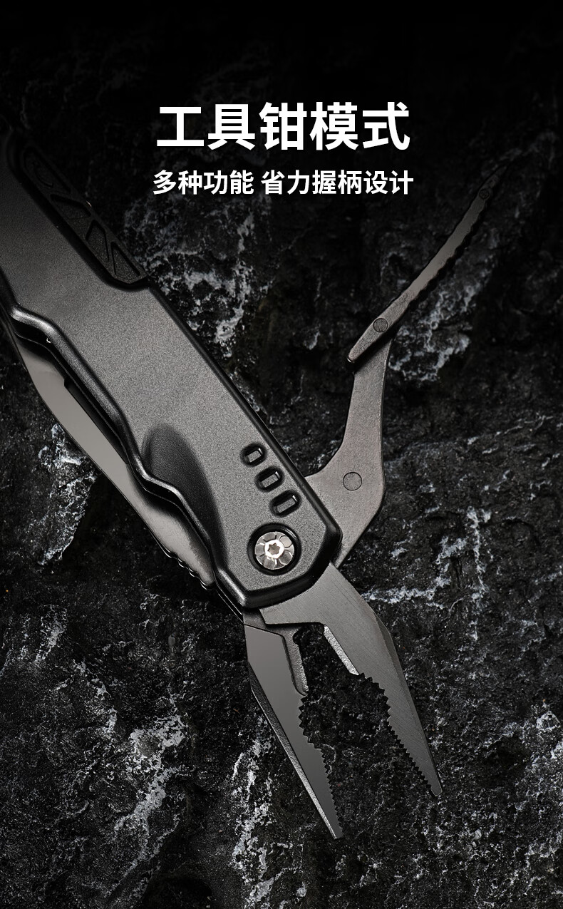 简约妮卡(jianyuenika)EDC组合工具多功能随身折叠扳手钳便携开瓶器钥匙扣野外生存装备 黑色 23合1