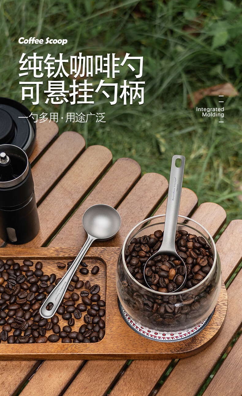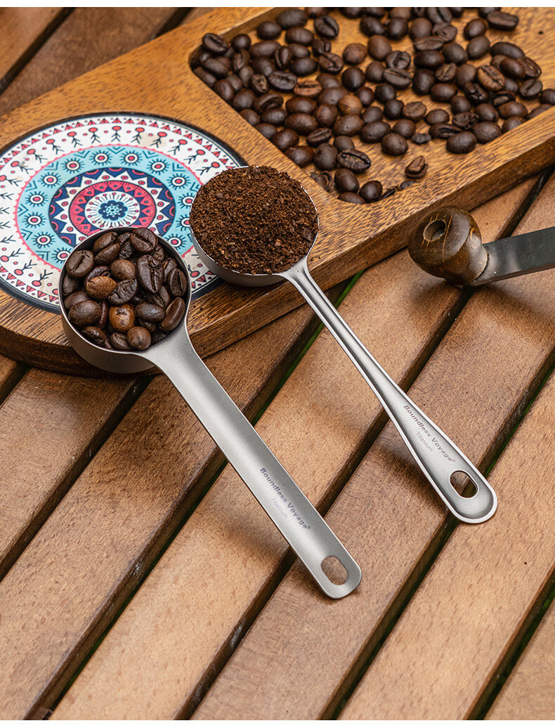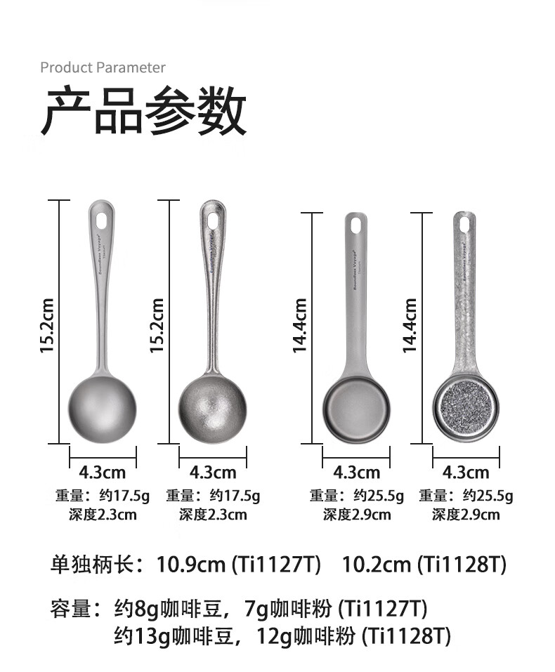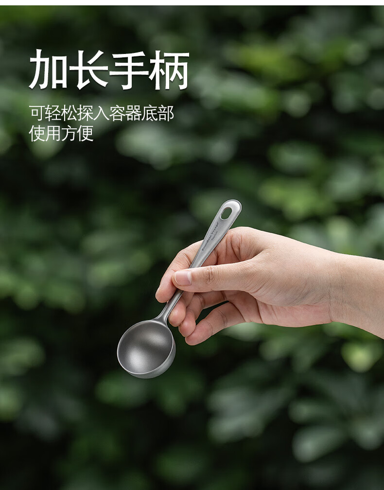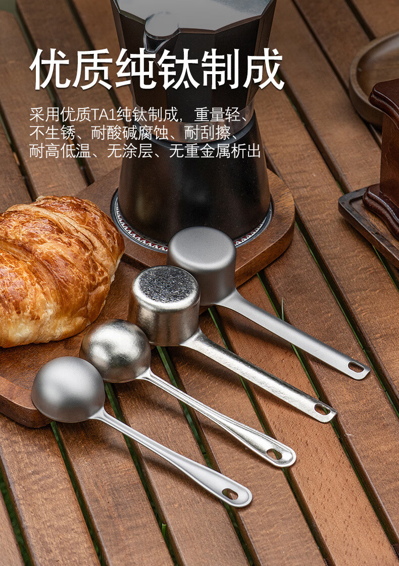 必唯纯钛户外咖啡勺子豆量勺轻量便携奶茶冰粉果粉勺长柄精致高颜值 Ti1128T 平底(结晶银色)