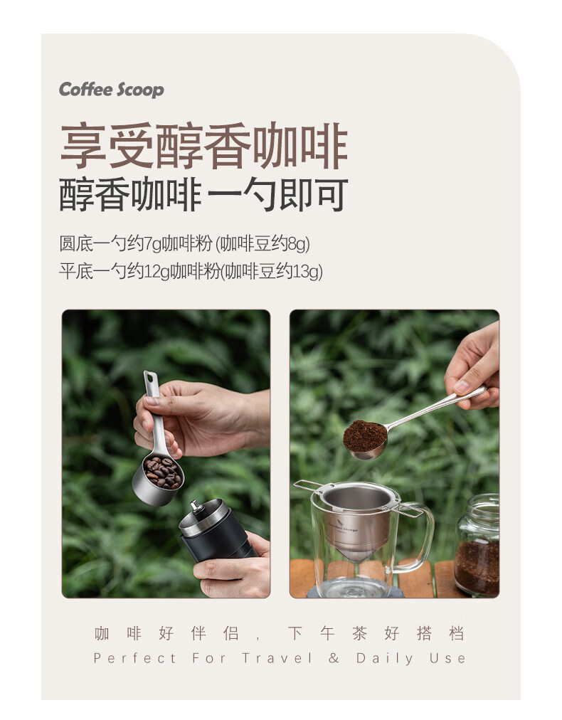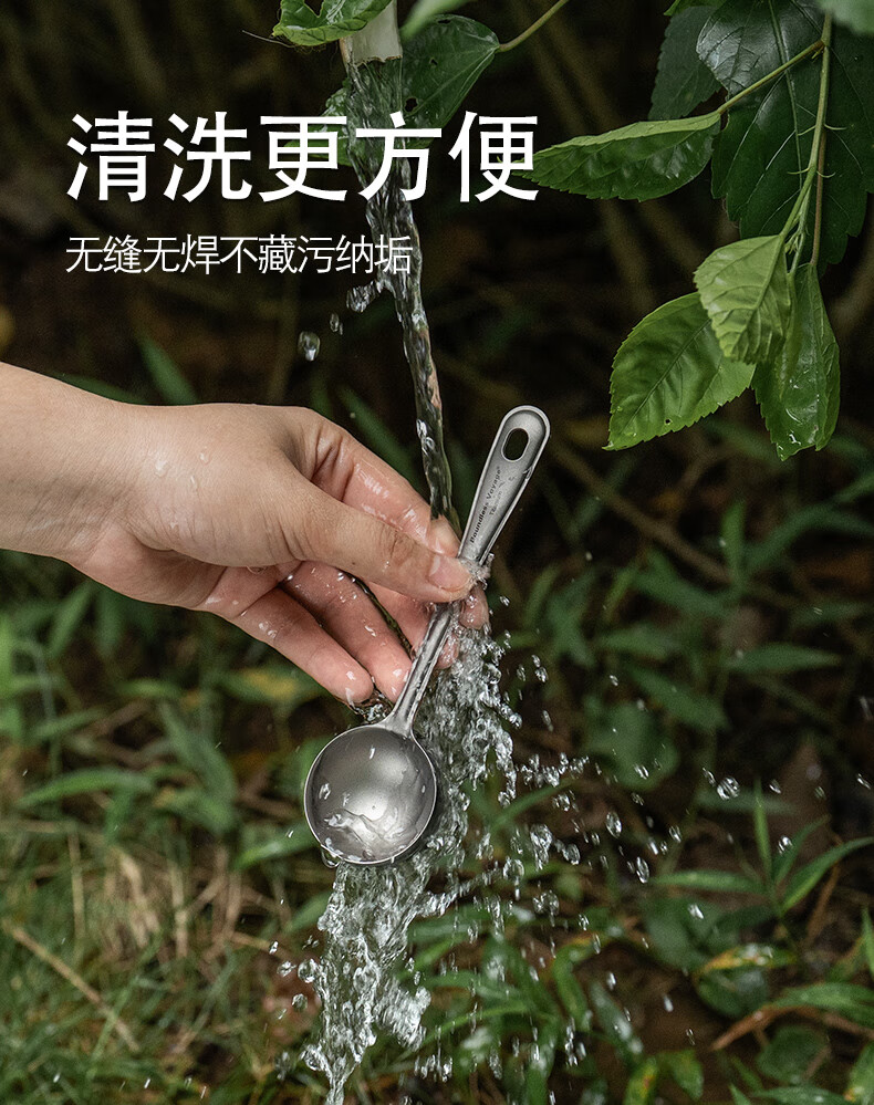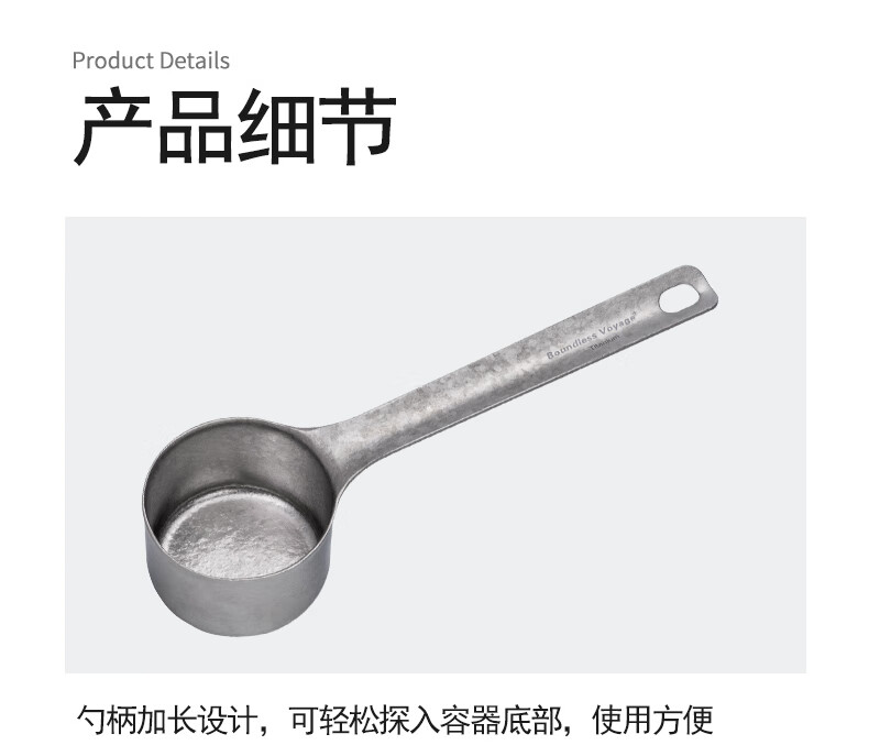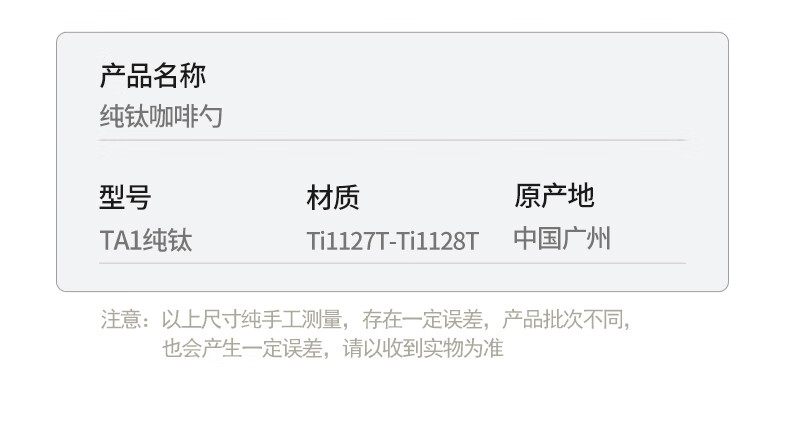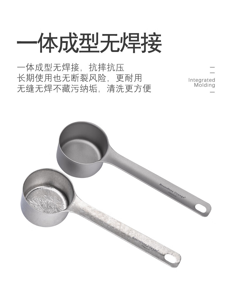必唯纯钛户外咖啡勺子豆量勺轻量便携奶茶冰粉果粉勺长柄精致高颜值 Ti1128T 平底(结晶银色)