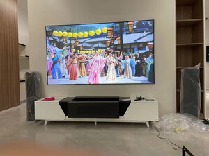 早就中意这款,中秋活动价拿下的,月初刚打扫好 安装师傅很专业 简单的操作也都告诉我了 真的很划算,电视很不错,音响效果非常好,白天很亮 4500流明真的是天花板了