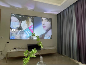 家里装修好 立马下单,正好赶上活动,价格优惠!原先担心4500流明不够用,实际安装调试完成后,效果直接经验到我们。担心是有点多余了!效果非常好,白天不拉窗帘足够用 非常清晰。不比液晶电视效果差!色彩过度更加细腻,非常真实!内置的宝华韦建的音箱调校的很好,重低音震撼,沉浸感极强。性价比极高的一款激光电视!卖家服务态度极好。处理问题到位!很不错
