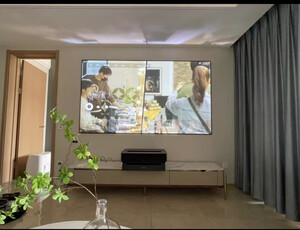 一直纠结激光电视大尺寸和电视的高亮度。关注了好几款,综合预算的情况下,最终选了MAX加100寸硬屏,各项参数不错,外观也十分符合家里的装修风格。趁着活动价入手。本身在负一使用,光线影响较少,实测效果超出预期,秒杀客厅的某米86。,尺寸完美,外形很有质感,十分协调。在墙面上不用像电视一样后面留很多空,和我的背景墙板融为一体,非常完美。客服老板,有问必答,热心专业,也很感谢。总的来说,是一次十分完美的购物体验,机器效果也完全超出预期。