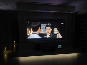 100吋比我想象中大好多,电梯都进不了,只好找物业到外面请了人用电梯轿厢运上楼,安装师傅也很专业,只是店里的伸缩台T1不能用,只好另外还要再买一个伸缩台,我量了一下,电视柜要有60厘米宽才不需要伸缩台,不然最好是买电视的时候把伸缩台一起买了,省得还要另外付费找师傅再约时间来安装,电视白天和晚上看都很好,晚上更清晰一些,总的来说还是很满意的