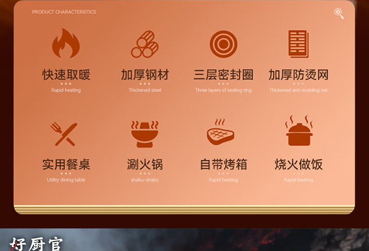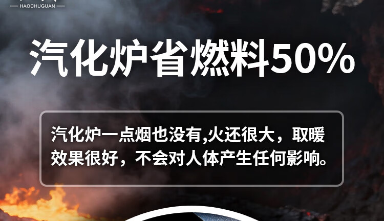 好厨官 三次燃烧无烟高端气化炉柴煤两用加厚烤火炉农村家用汽化取暖炉 1.2米特厚碳色锰钢丨单桌面