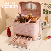 青春符号小香风2023化妆箱化妆品包女便携大容量化妆师高颜值收纳箱盒 NEW粉色【内阁款】有序收纳
