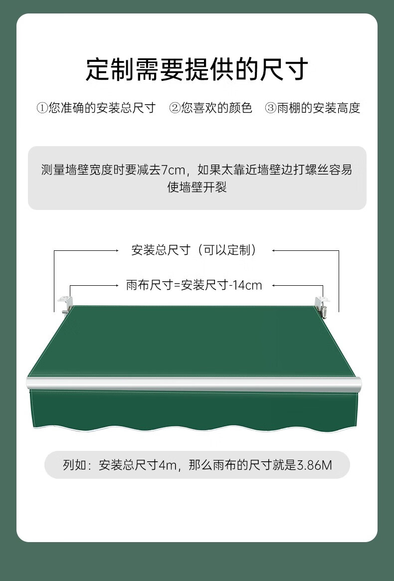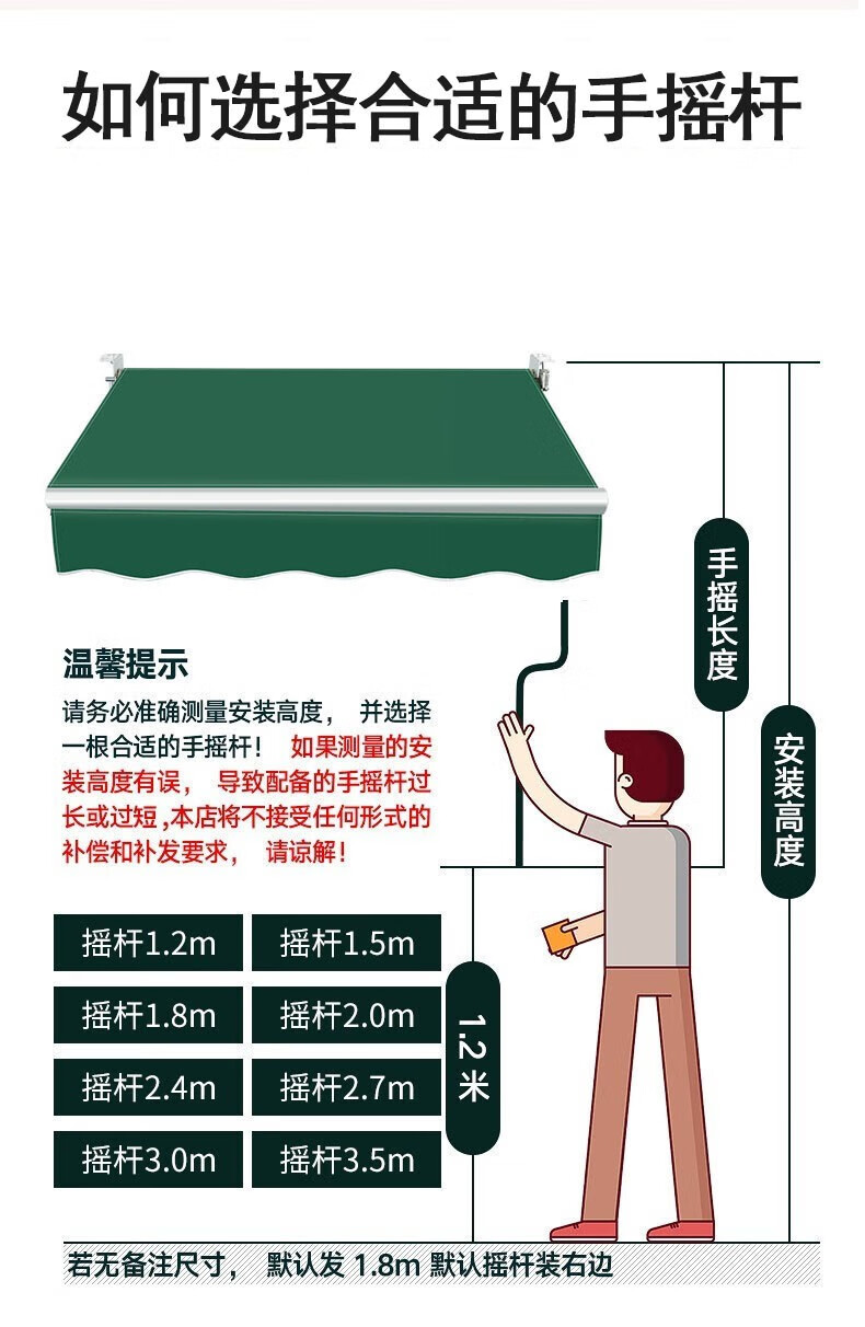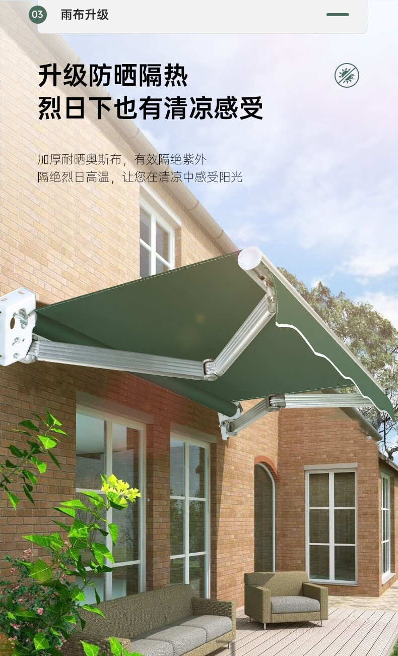 睿鹰伸缩式手摇雨棚遮阳棚折叠电动收缩阳台户外屋檐门面遮阳蓬遮阳伞 长2米*伸缩1.5米【定制】
