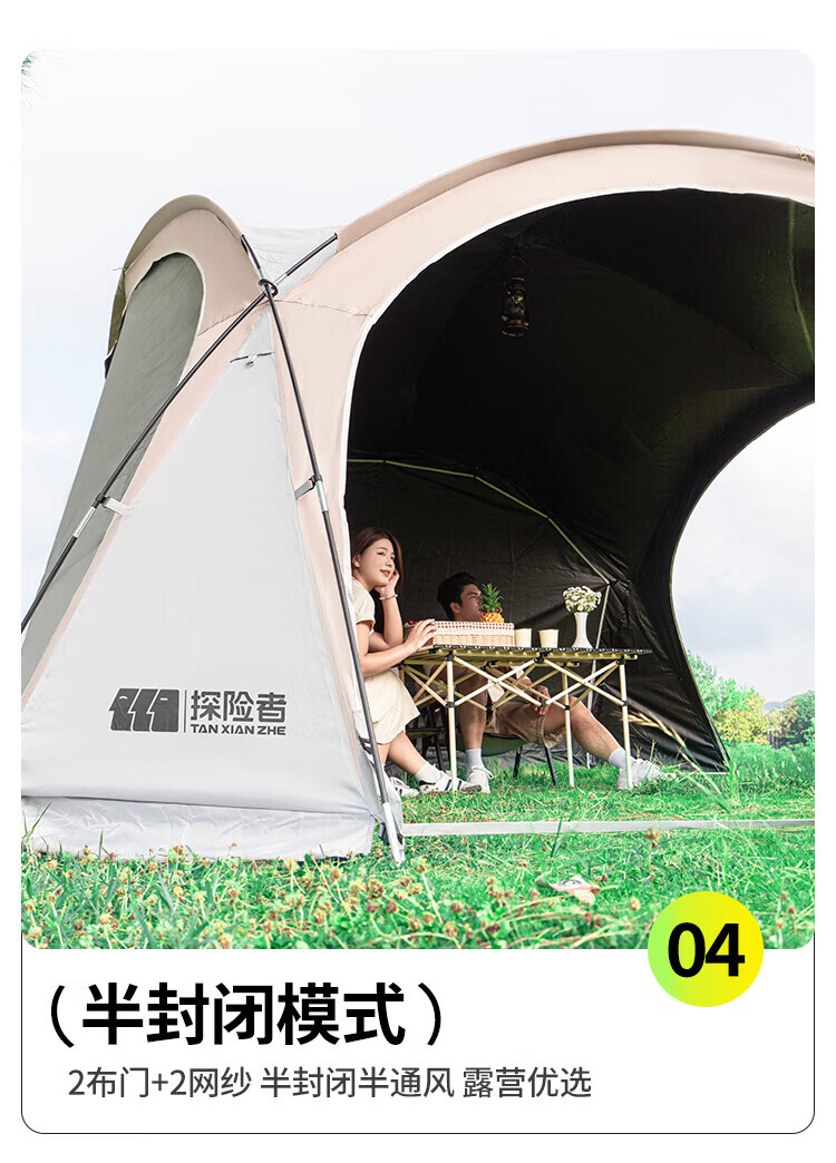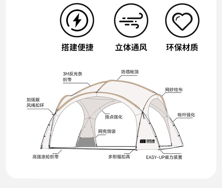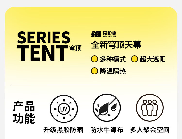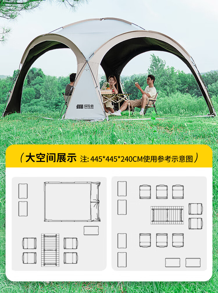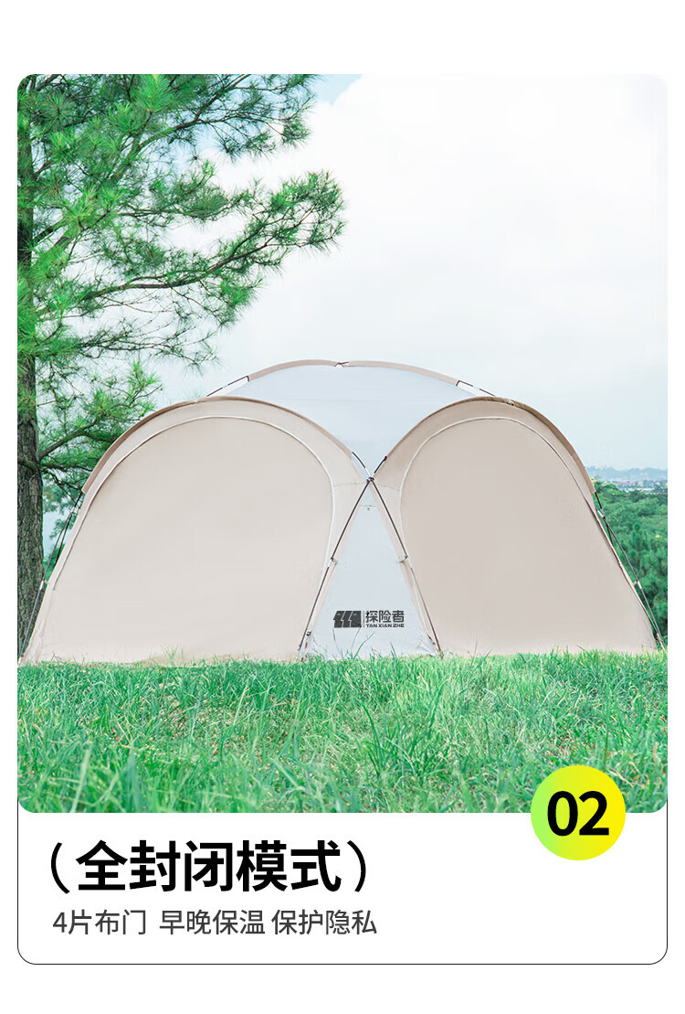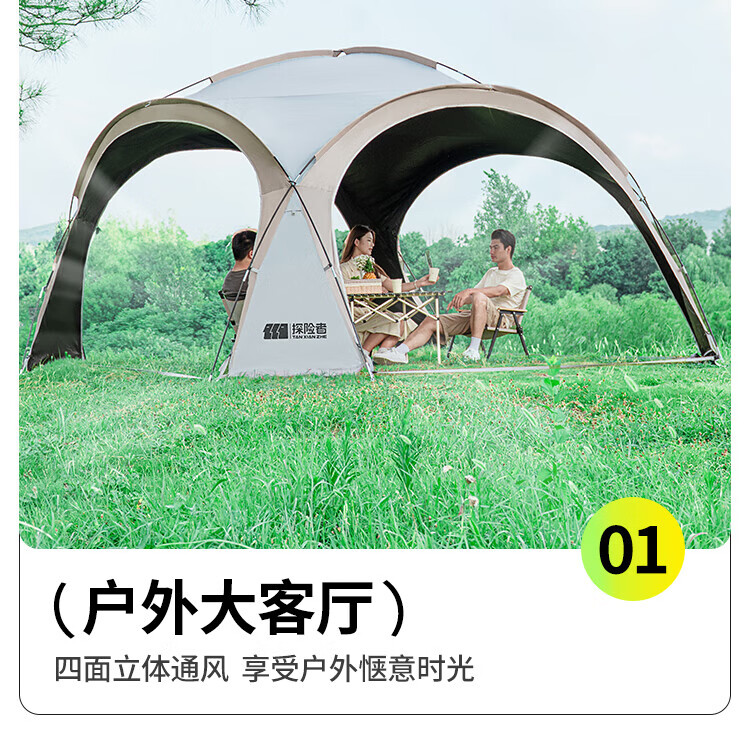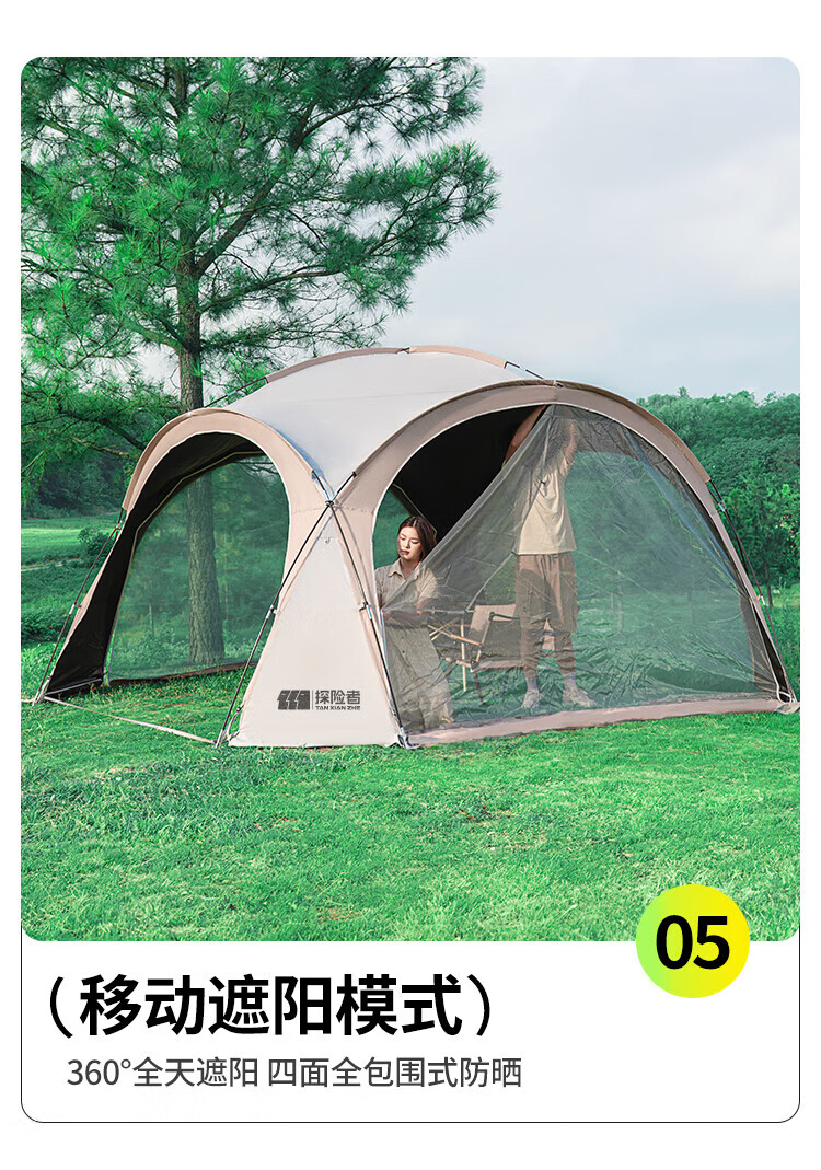 探险者探险者天幕黑胶穹顶天幕户外防雨过夜野营露营装备全套防晒遮阳棚 【黑胶】速开穹顶天幕