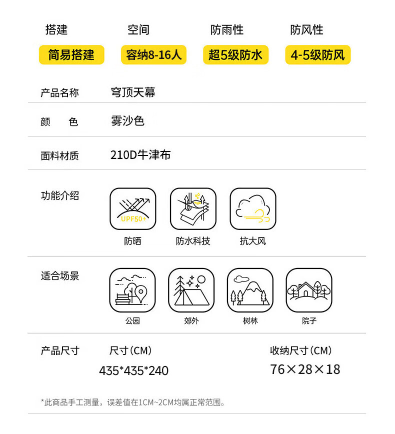 必须~这个黑胶天幕!搭建简单得像搭积木,遮阳空间大,防晒效果没话说,加厚面料用着超安心。