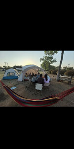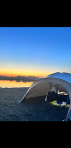 入手的黑胶天幕太香啦!遮阳空间大,能把整个露营区都罩住,防晒效果好,稳定性也没得挑,加厚面料很厚实。