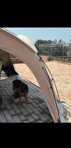 跟朋友的天幕一比,我这黑胶天幕优势尽显。遮阳空间大出不少,防晒效果更是一骑绝尘,加厚面料,搭建还简单,完胜!