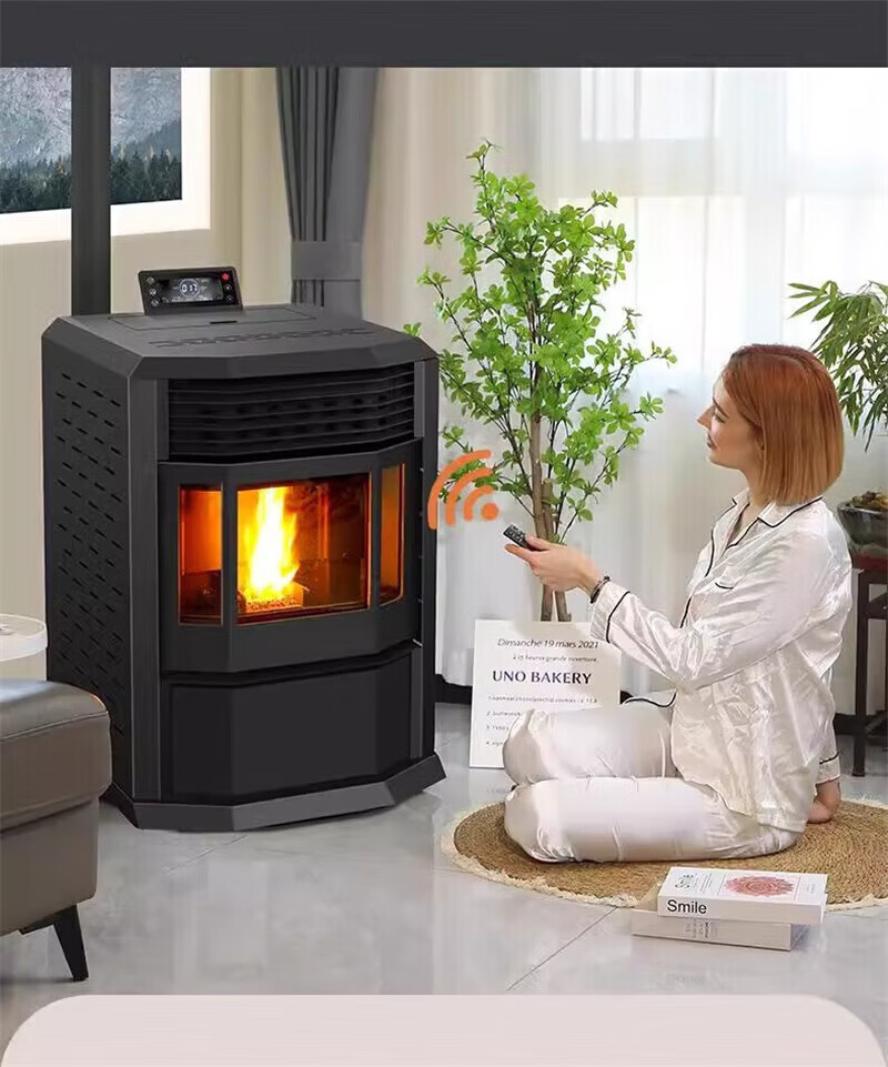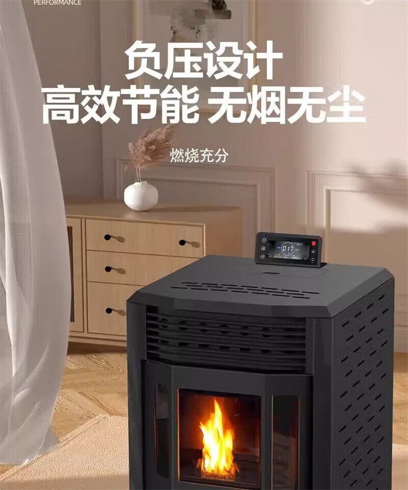 能师傅新款欧式生物颗粒取暖炉商用全自动环保燃料取暖炉室内无烟颗粒炉 3m 不锈钢烟管
