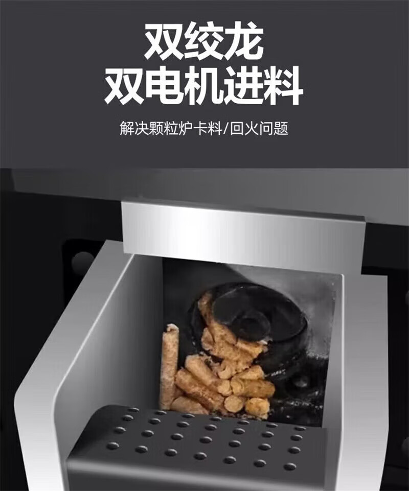 新型生物颗粒取暖炉木柴颗粒两用采暖炉节能环保家用商用无烟取暖 木材颗粒两用80型 新款双绞龙双