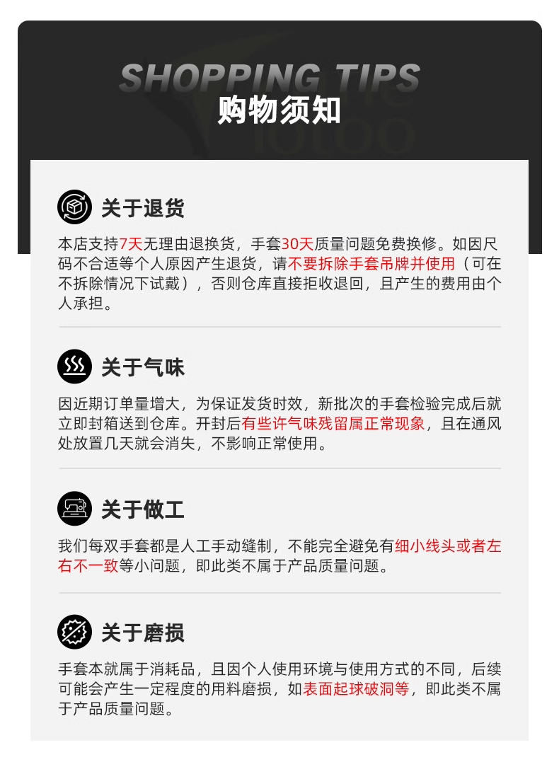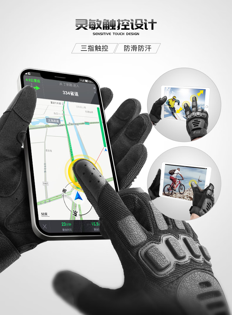 第二次回购,物流依然很给力,一如既往佩戴起来舒适度极高,不管是指节的活动还是掌心捏握,不会有不适感和束缚感,质量做工一流,指尖的触屏功能,不影响使用手机,骑行还是户外露营爬山都可以用确实很实用,goodgood,推荐给大家,值得入手