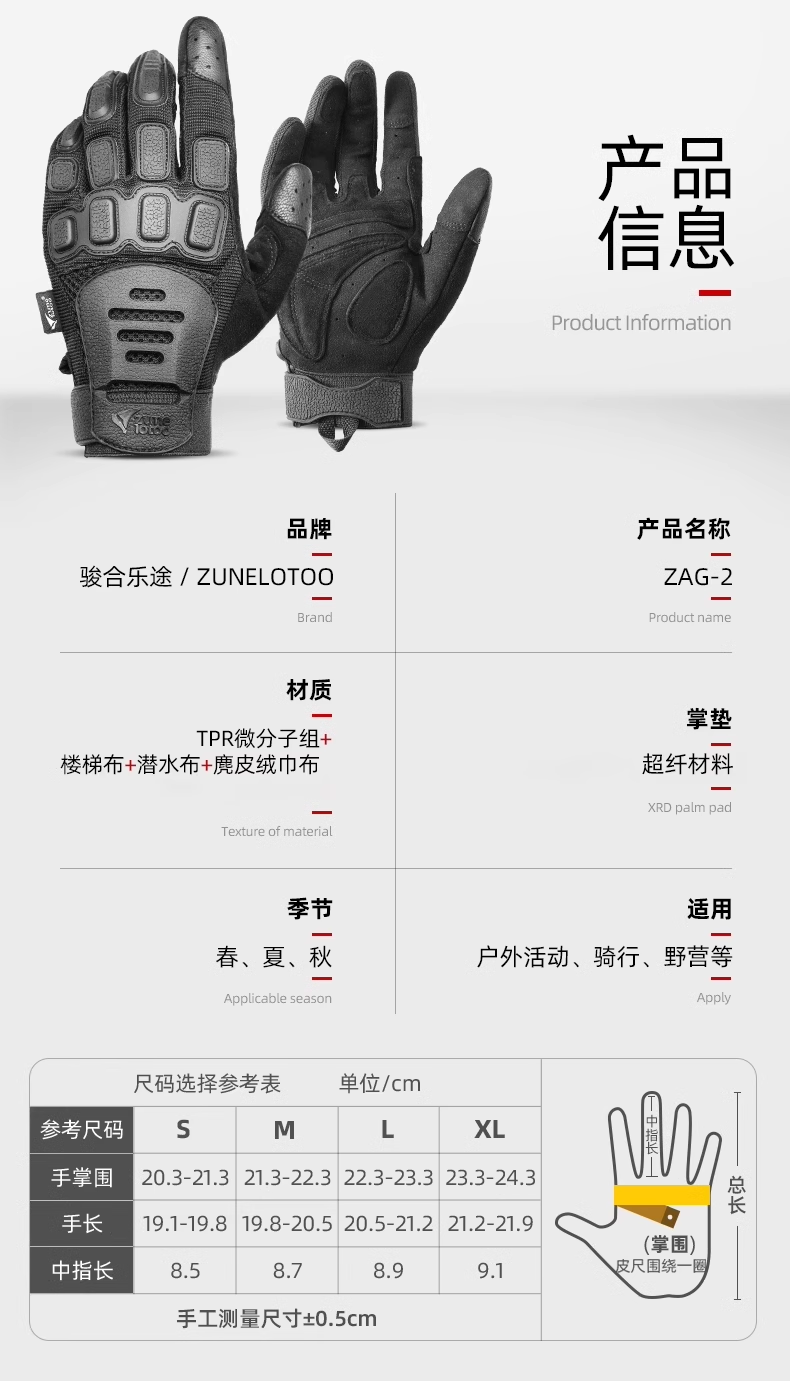zune lotoo战术手套户外摩托车骑行全指半指男女透气保暖防护冬季手套男zag2 半指 S