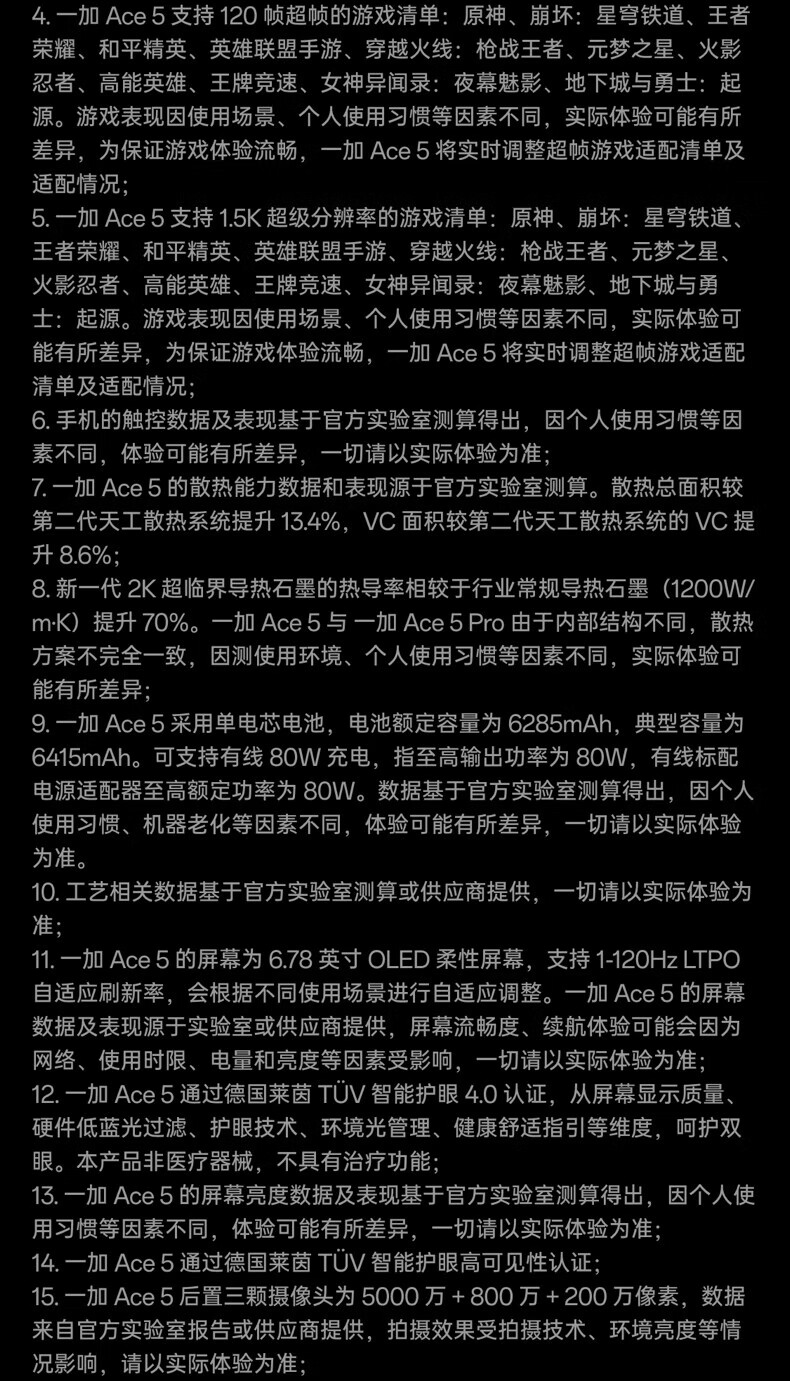 Ace5外观精致,立体双扬声器声音清澈宏亮。索尼5000万像素906主摄,拍照很清晰。独有风驰游戏内核,玩游戏爽。Ace5是一部价格亲民和性能优秀的手机,很值得推荐!
