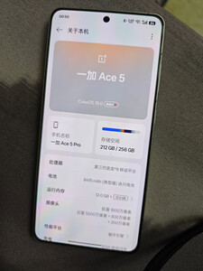 期待已久的一加ACE5终于到手了。接到快递的电话就迫不及待的取回来。打开手机盒子的瞬间很惊喜,非常精致的手机,很漂亮,做工扎实,相对其他品牌同价位竞品做工好太多了。终于用了直屏和直边框设计,非常舒服,很好贴膜。而且背板终于使用了AG磨砂玻璃,很温润很舒服,不沾指纹,边款也是用了喷砂铝合金工艺,也不沾指纹,太棒了。拍照还算说的过去吧,能用,扫码挺快。续航体验也很好,这次的6415电池容量很够用,常规使用一整天没问题。扬声器虽然是半呛设计,但是后盖一点不震手,音质够用吧。最后是屏幕,非常通透细腻,一如既往可以相信一加的屏幕,值得购买。