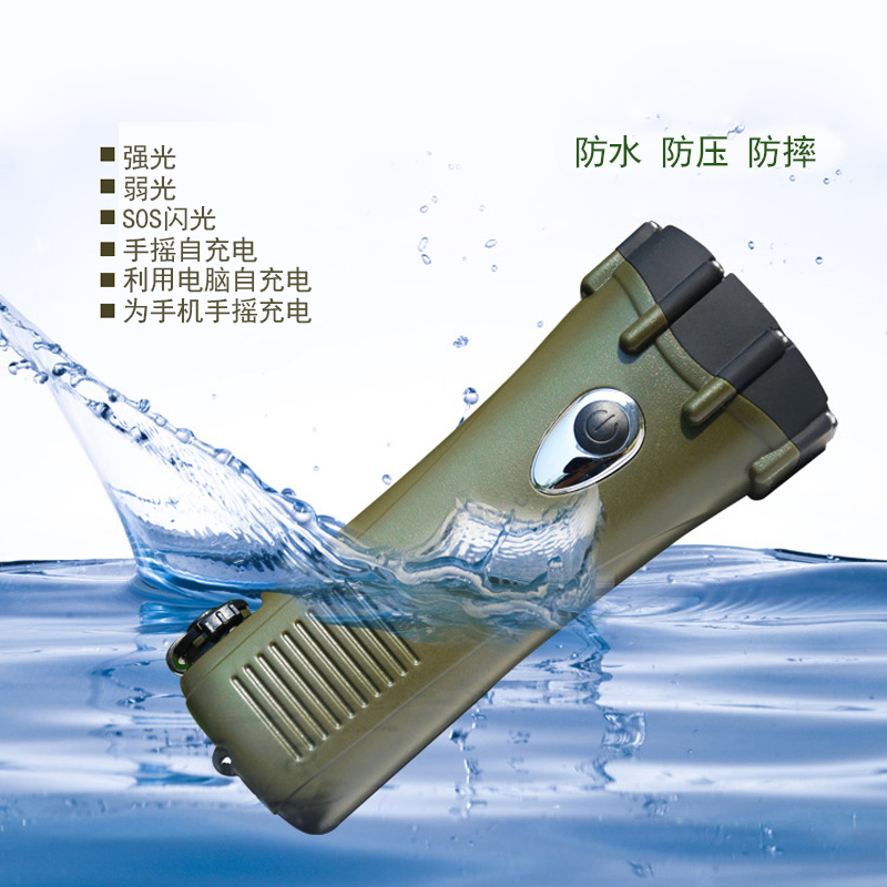 品名: 多功能手摇自发电手电/可充电/潜水手电筒/防压防摔