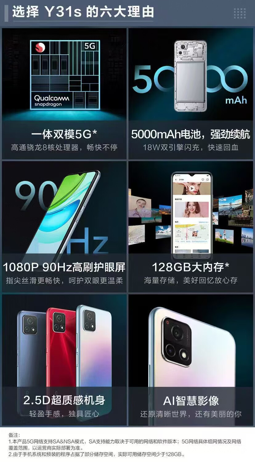 vivoY31s全网通5G智能5000毫安大电池高刷护眼屏学生老人备用机9.9.新 太空灰 4+128