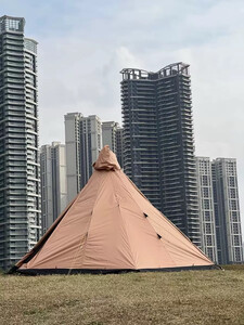 山之客(MOUNTHIKER)户外炎帐印第安金字塔牛津布帐篷多人露营防暴雨柴火炉帐篷 炎帐外账美拉德棕 3-4人