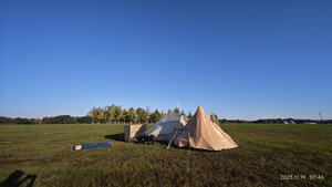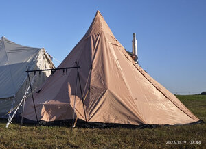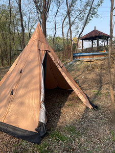 双十一新购的帐篷,用过一次了,整体效果不错!这款是带烟囱口版本的,顶部还有防烫的布料设计,但使用时还是要自己准备防烫的烟管。整体的颜值还可以,够2-4个人使用,人再多的话可能会有点挤!