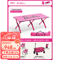 原始人芭比露营桌椅铝合金蛋卷桌户外折叠桌便携桌子野餐全套装备 【亮粉】铝桌+克米特*4+推车