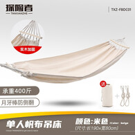 探险者(TAN XIAN ZHE)吊床 防侧翻单人双人帆布吊床家用户外庭院露营野餐野外秋千 防侧翻款单人-米白色