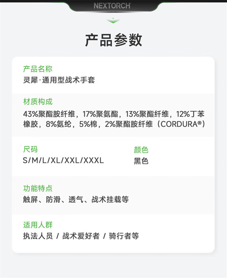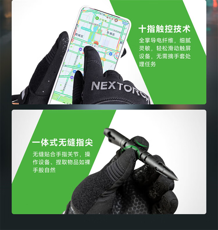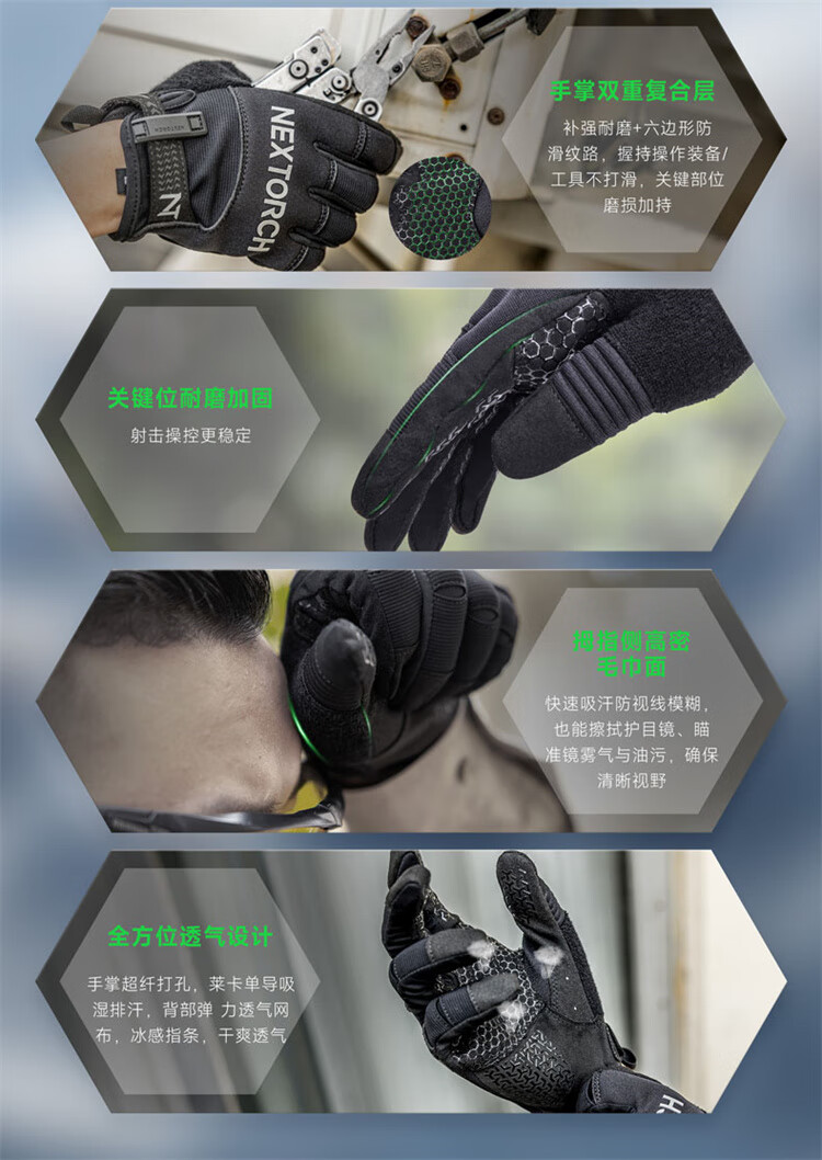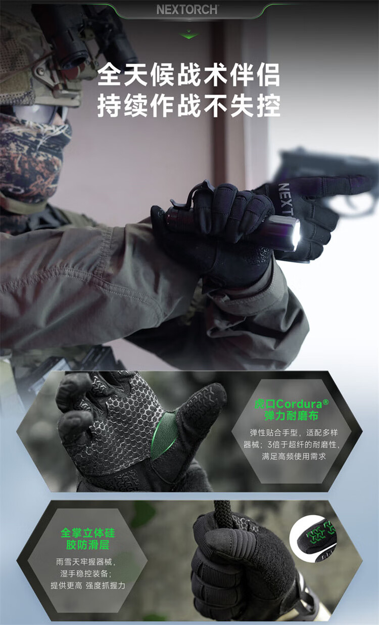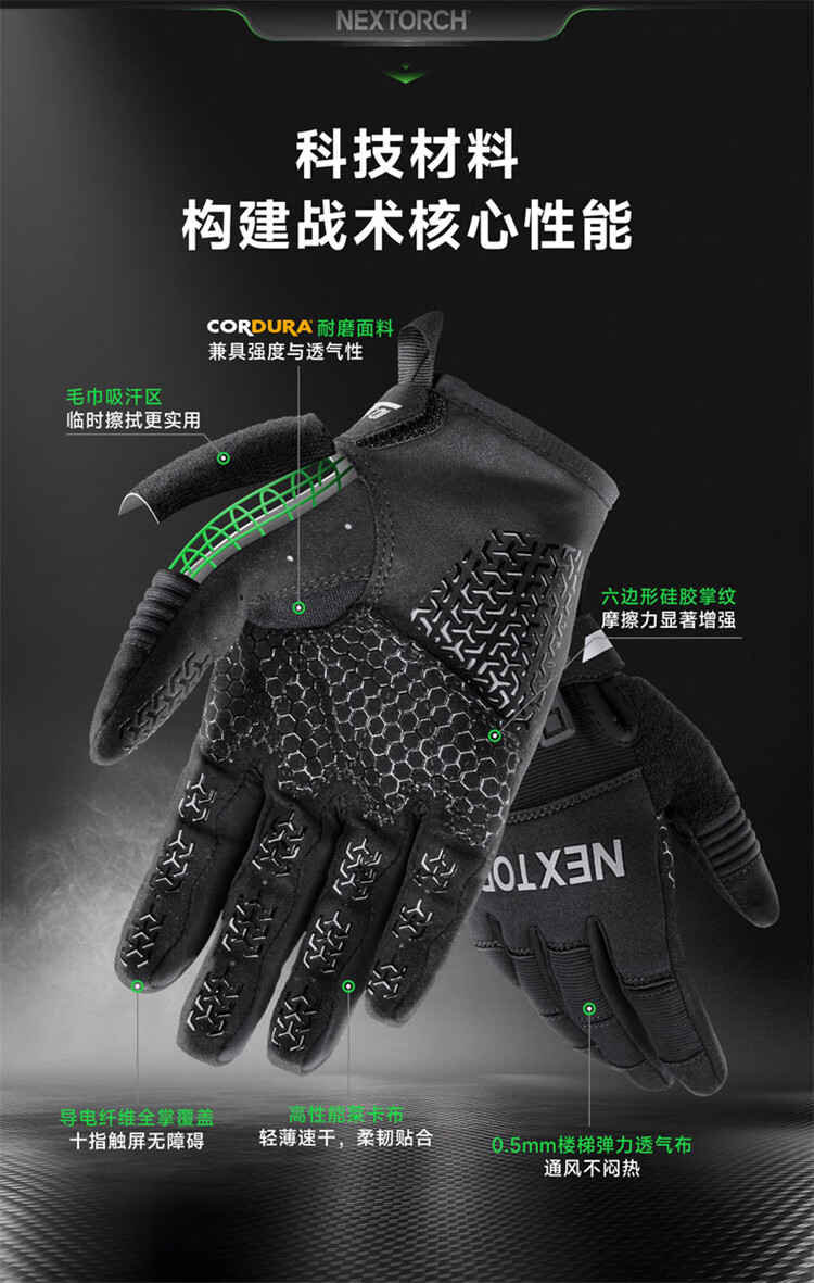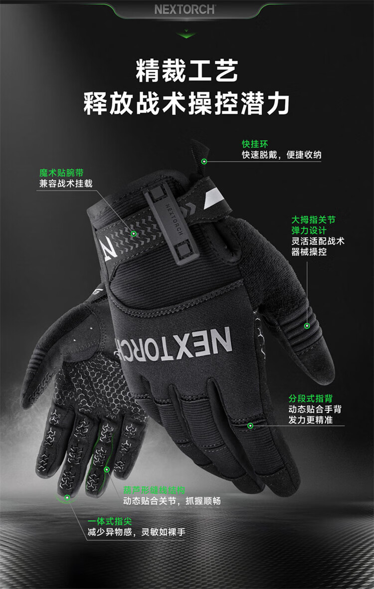 纳丽德nextorch纳丽德灵犀战术手套十指灵敏触屏户外骑行黑色全指手套 灵犀战术手套+UT10C帽灯 S