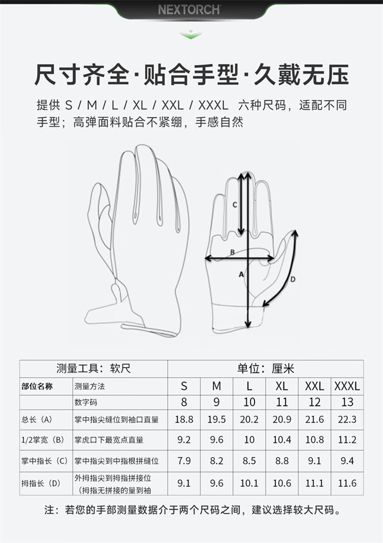 纳丽德(NEXTORCH)灵犀战术手套户外骑行防护手套透气耐磨登山运动手套十指触屏防滑 灵犀手套(码数:3XL)