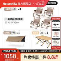 Naturehike挪客暮望超轻铝合金折叠椅户外露营椅便携式野餐钓鱼沙滩懒人椅子 卡其色小号4人露营基础套餐