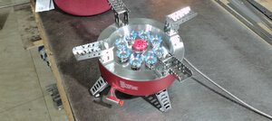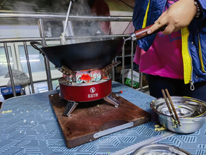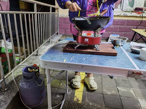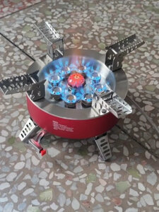 宝贝收到了,接液化气罐试了一下火力,在转接头处有开关,微开打火,再全开,火力超猛,火焰中心红红的火柱穿起,呼啸着,平时家里的普通大勺用不上这么猛的火,多人做饭用大锅或大的炒勺够用了,试了一下大勺坐上去很稳,户外做饭好助手!👍